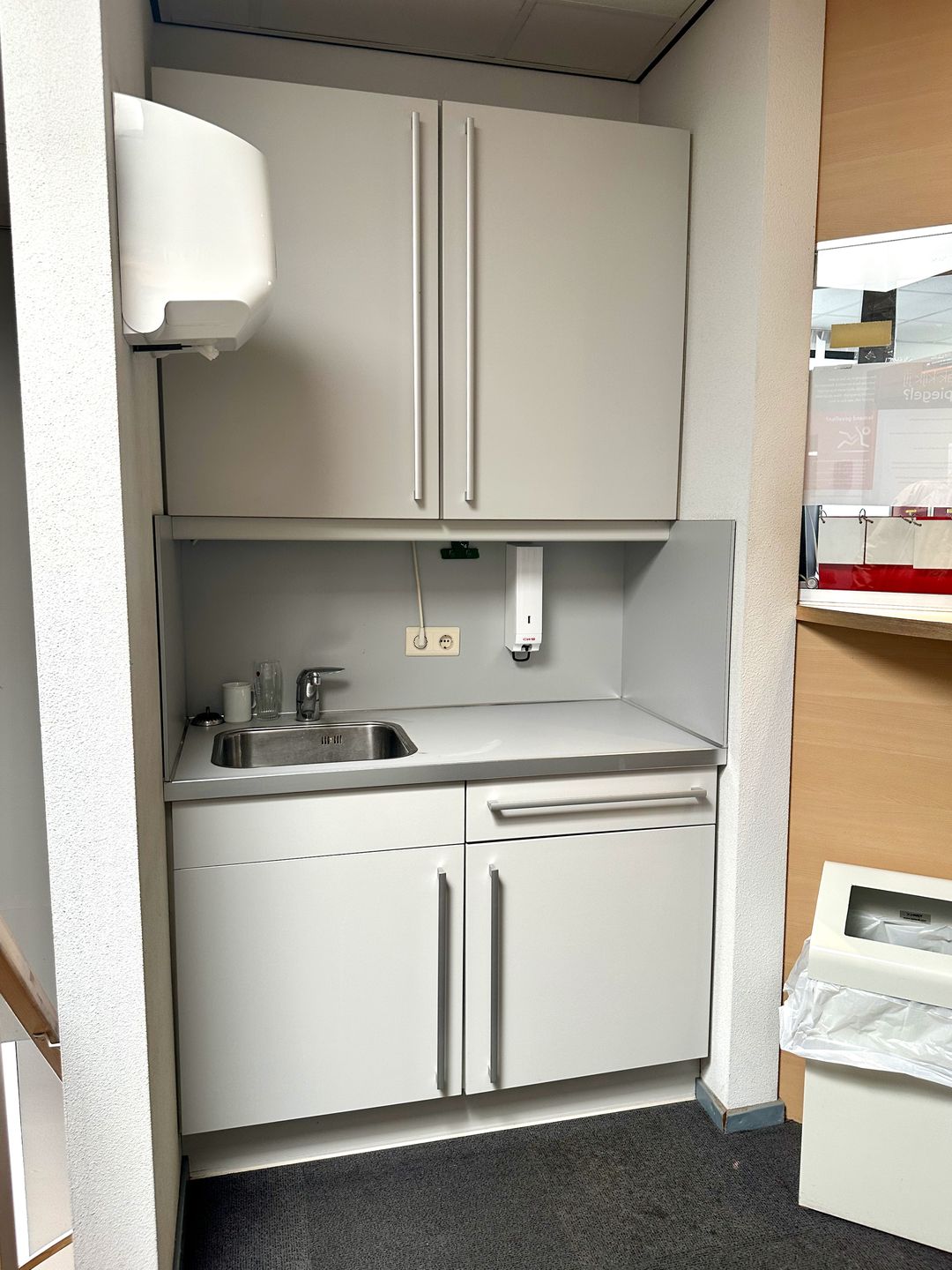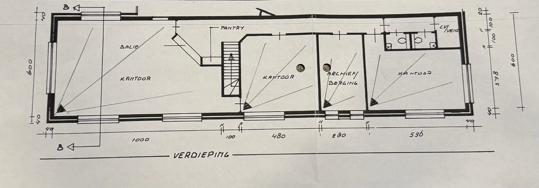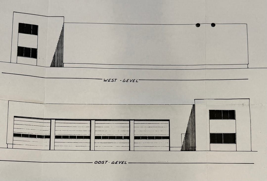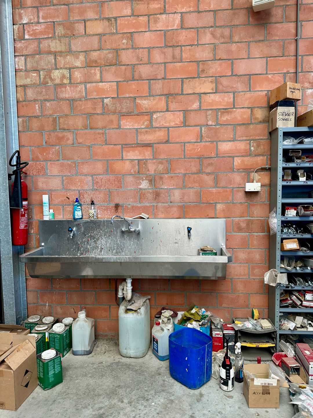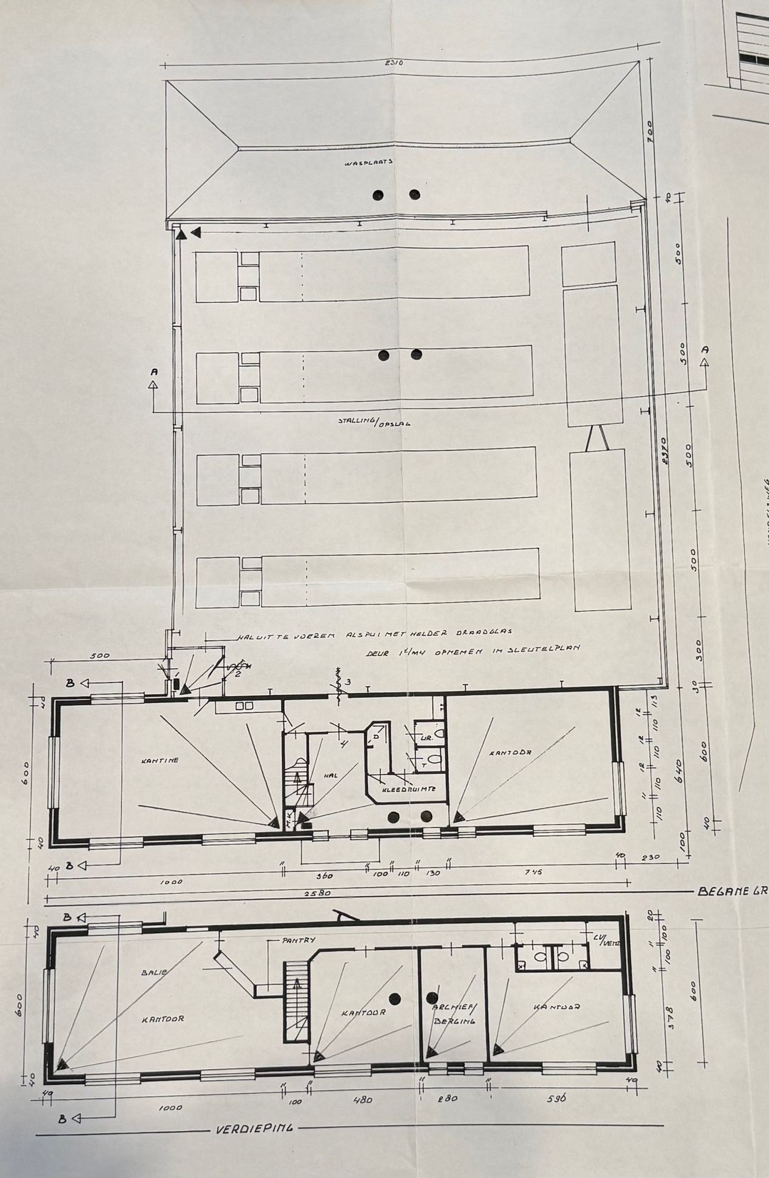 - Kantine van ca. 60 m² (circa 10 × 6 m) met toegang tot de loods