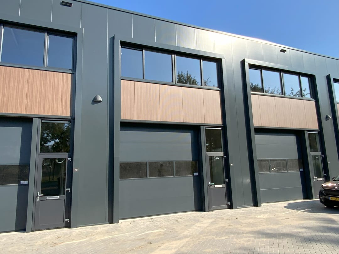- Overheaddeuren, betonvloer, toilet, pantry en te openen ramen