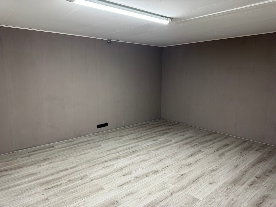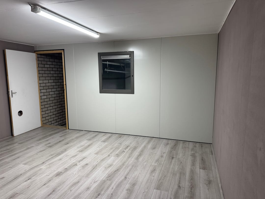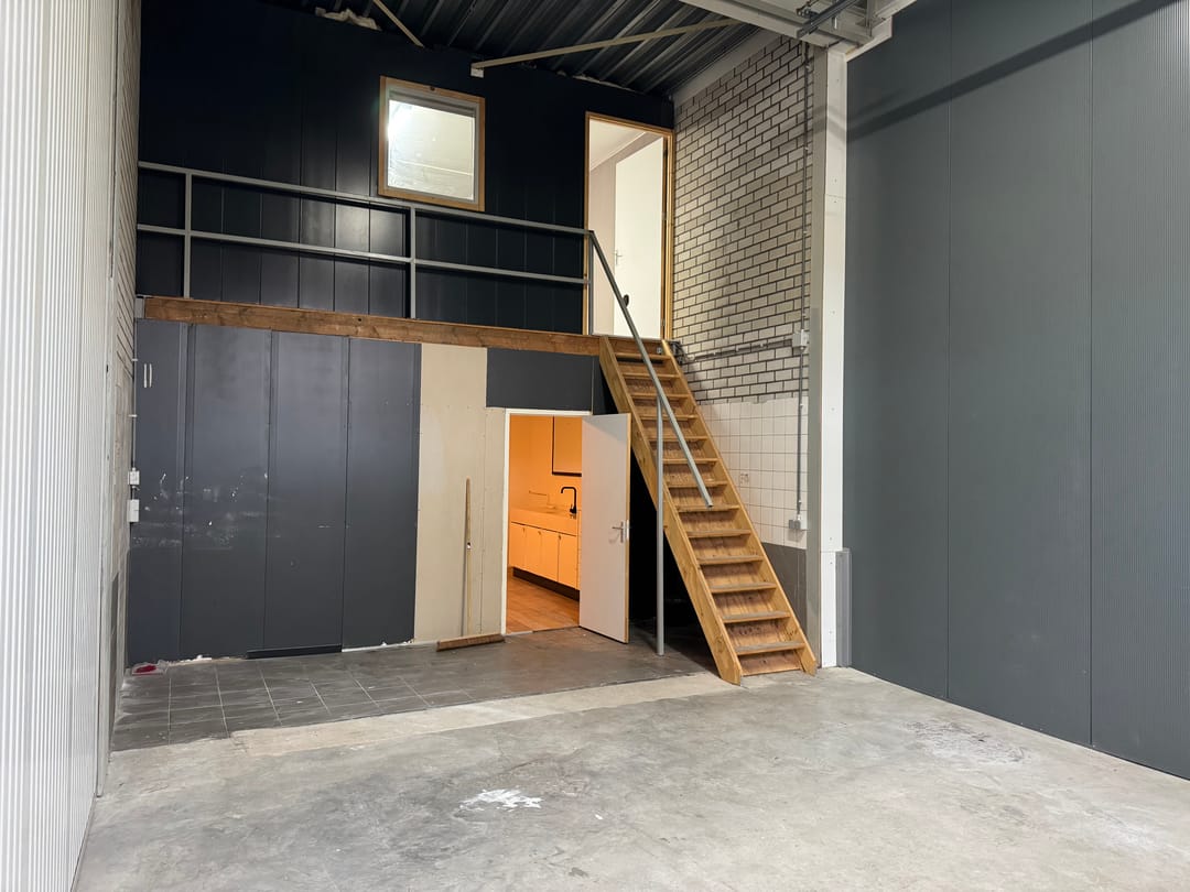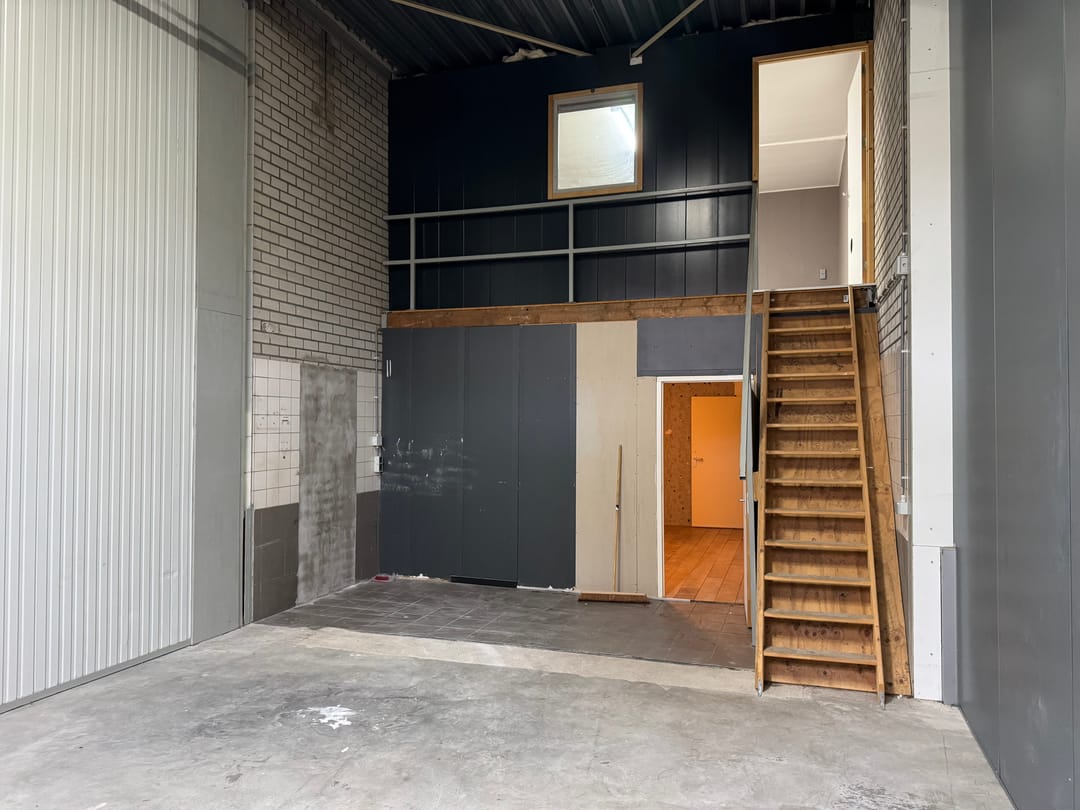 De ruimte is toegankelijk via de voorzijde middels een overheaddeur of separate toegangsdeur. De begane grond is verdeeld in een voor- en achterzijde, de achterzijde is voorzien van een kantoorruimte van ca. 24 m². Boven deze kantoorruimte is nog een afgesloten ruimte gelegen.