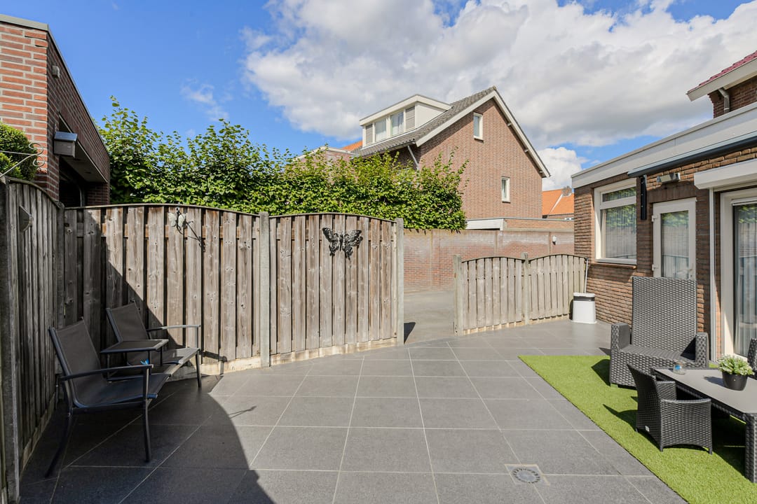 De tuin is gelegen op het zuidwesten en biedt volop ruimte voor meerdere terrassen en een eigen indeling. De tuin is open van karakter; voor wie meer beschutting wenst zijn er diverse mogelijkheden om extra privacy te creëren, bijvoorbeeld met groen, erfafscheidingen of pergola’s. Hierdoor is de buitenruimte geheel naar eigen voorkeur vorm te geven.
