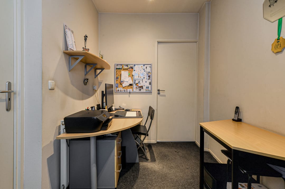 Direct aan de woning bevindt zich een extra ruimte die uitstekend geschikt is voor een kantoor, salon of praktijk aan huis. Deze ruimte maakt comfortabel thuiswerken of het ontvangen van klanten mogelijk, zonder dat dit ten koste gaat van het woongedeelte.