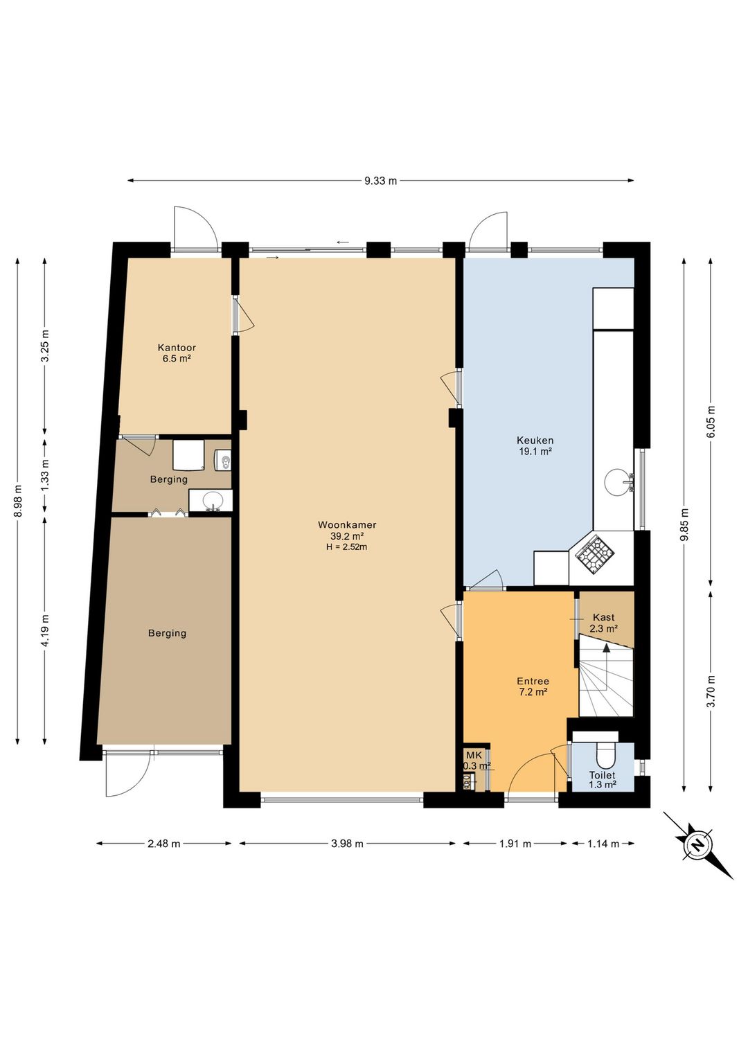 De woning heeft een prettige en functionele indeling met een lichte woonkamer die ruimte biedt voor een comfortabele zithoek en eethoek. Door de indeling en het daglicht is dit een fijne leefruimte waar je je eigen sfeer kunt creëren. De begane grond vormt een solide basis die eenvoudig naar eigen woonwensen is aan te passen.