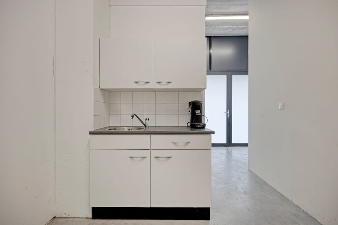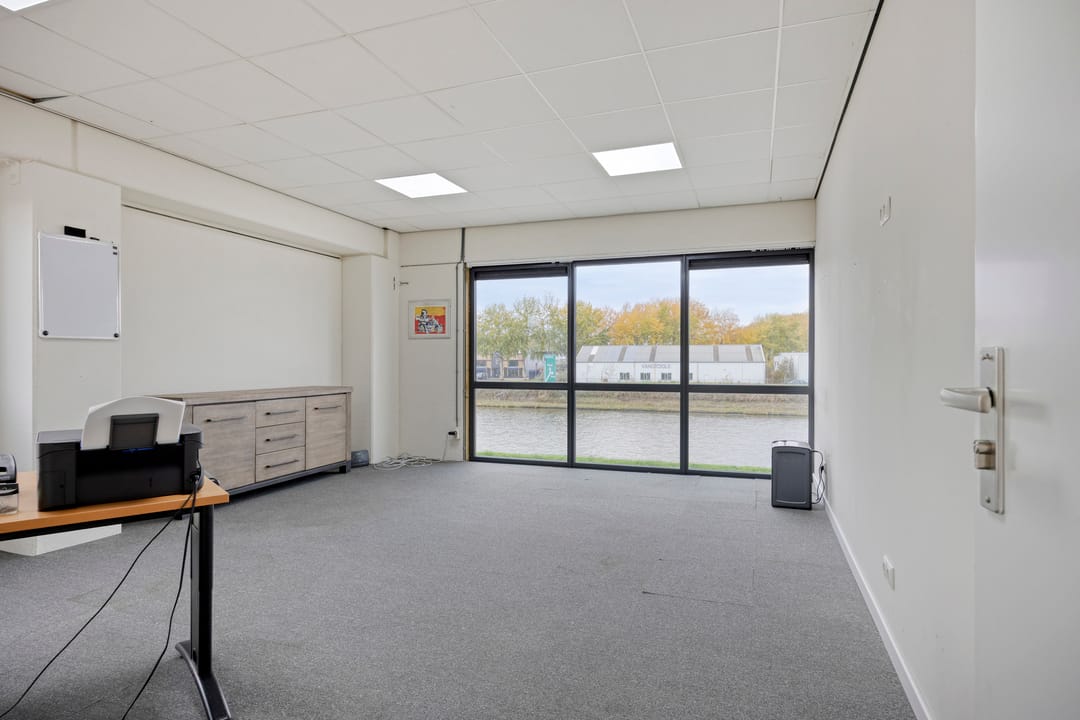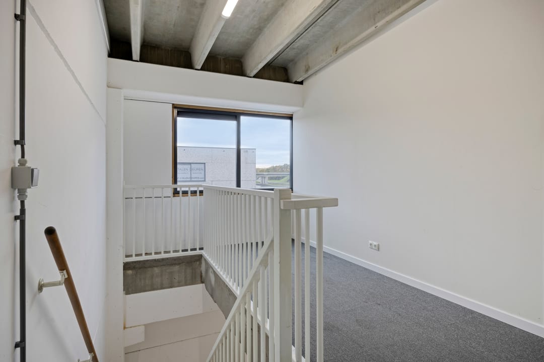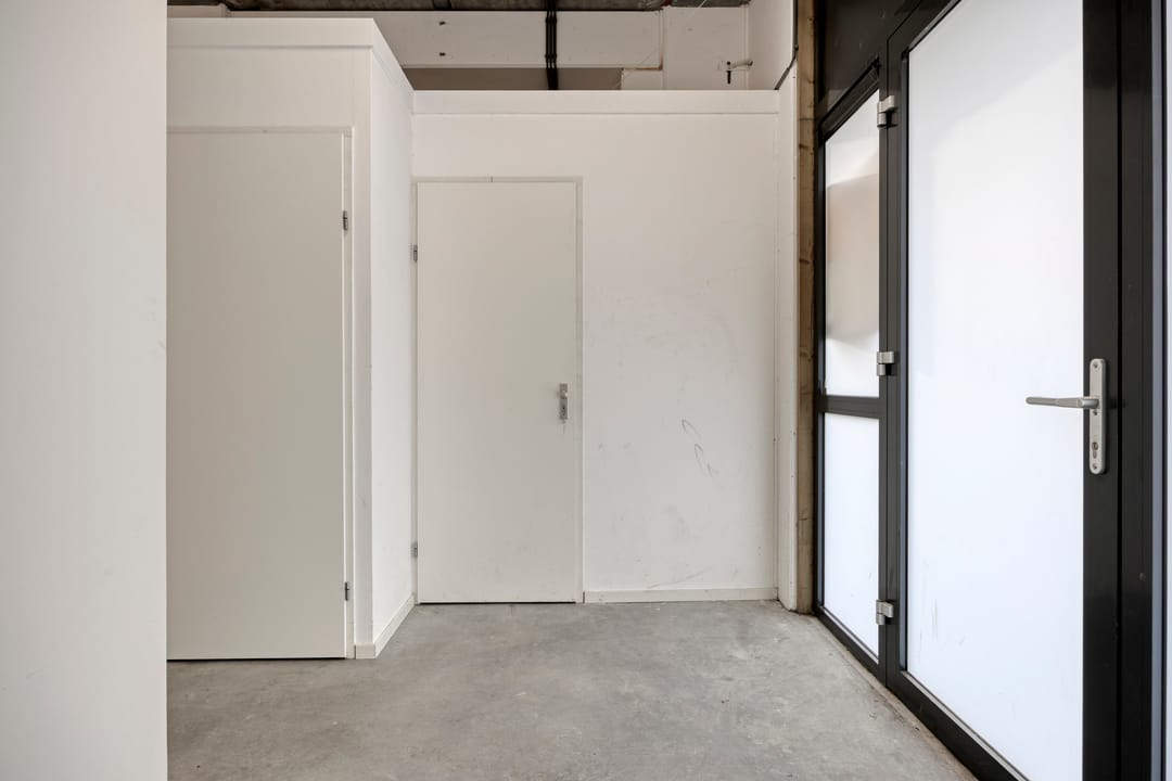 De hoekunit kijkt uit op het Wilhelminakanaal en beschikt over een entree met toegang naar de bedrijfshal en de trapopgang naar de verdieping, die bestaat uit twee kantoorruimtes, allebei met uitzicht op het kanaal.