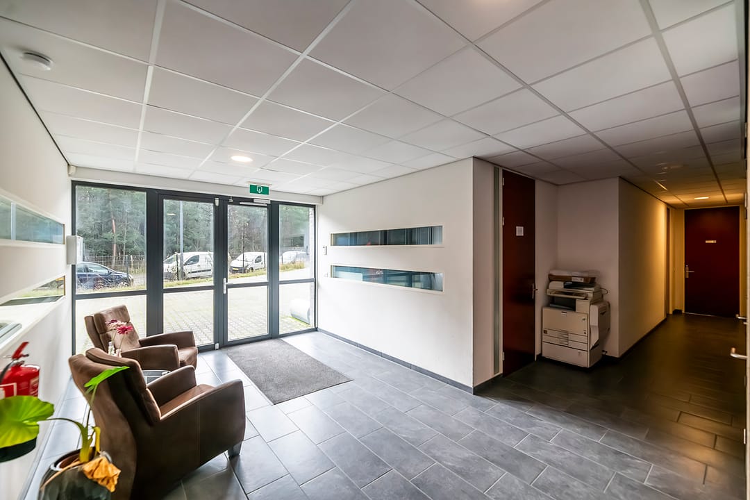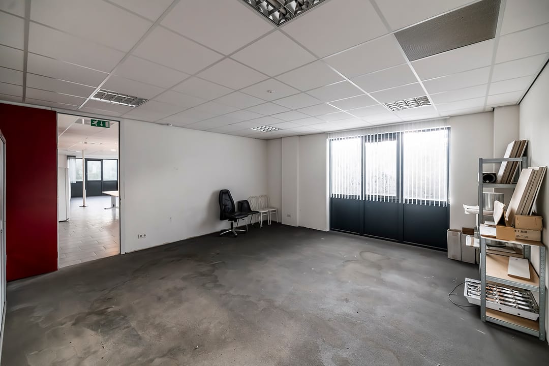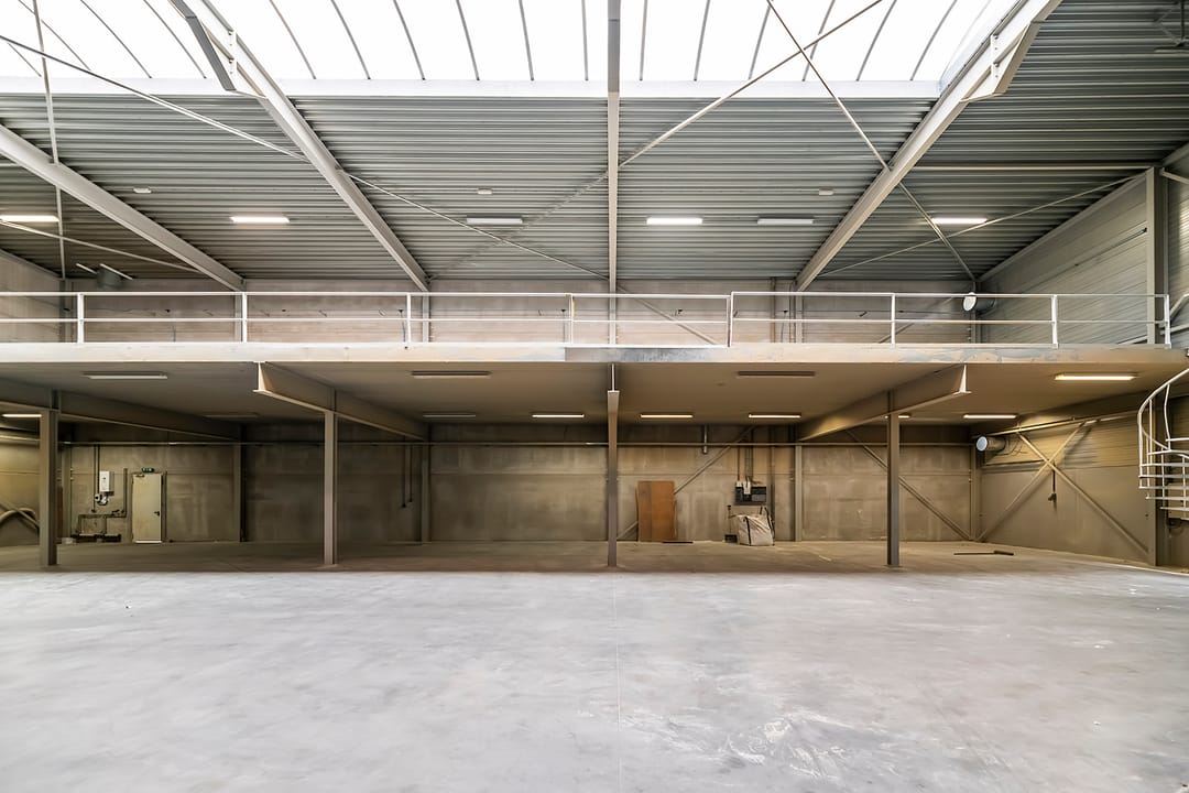 De kantoorruimte op de begane grond, bedrijfshal (links) en de entresol (links), zijn verhuurd.