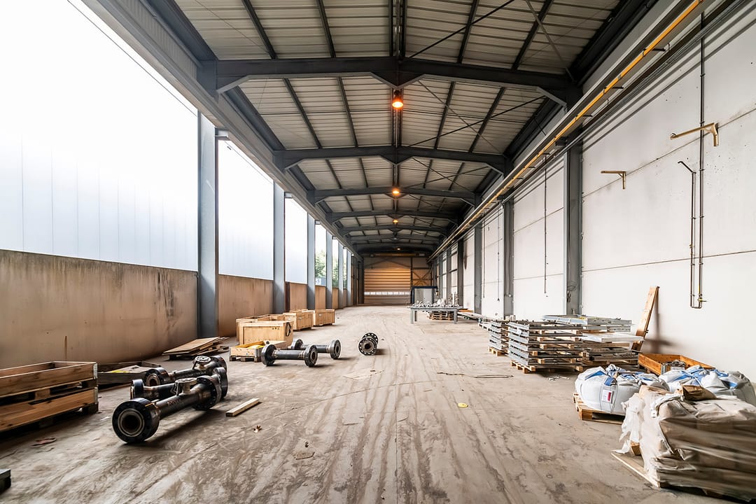 - Lichtstraten, overheaddeuren, krachtstroom, betonvloer, toilet en pantry