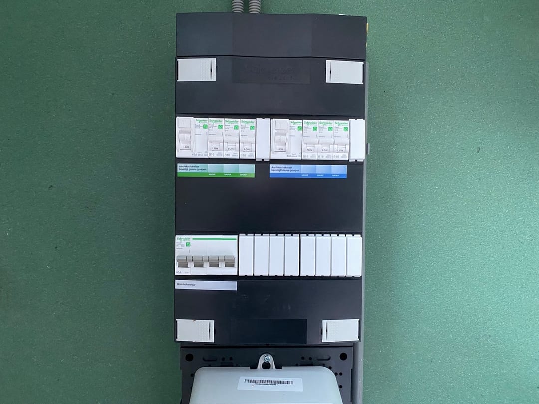 - standaard meterkast, bestaande uit 3 fase kast - 4 groepen en 2 x aardlek;