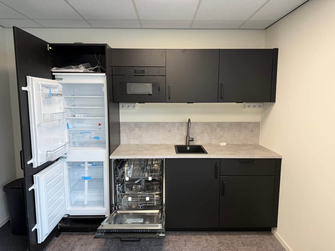 - pantry voorzien van koelkast, vriezer, vaatwasser en combimagnetron;
