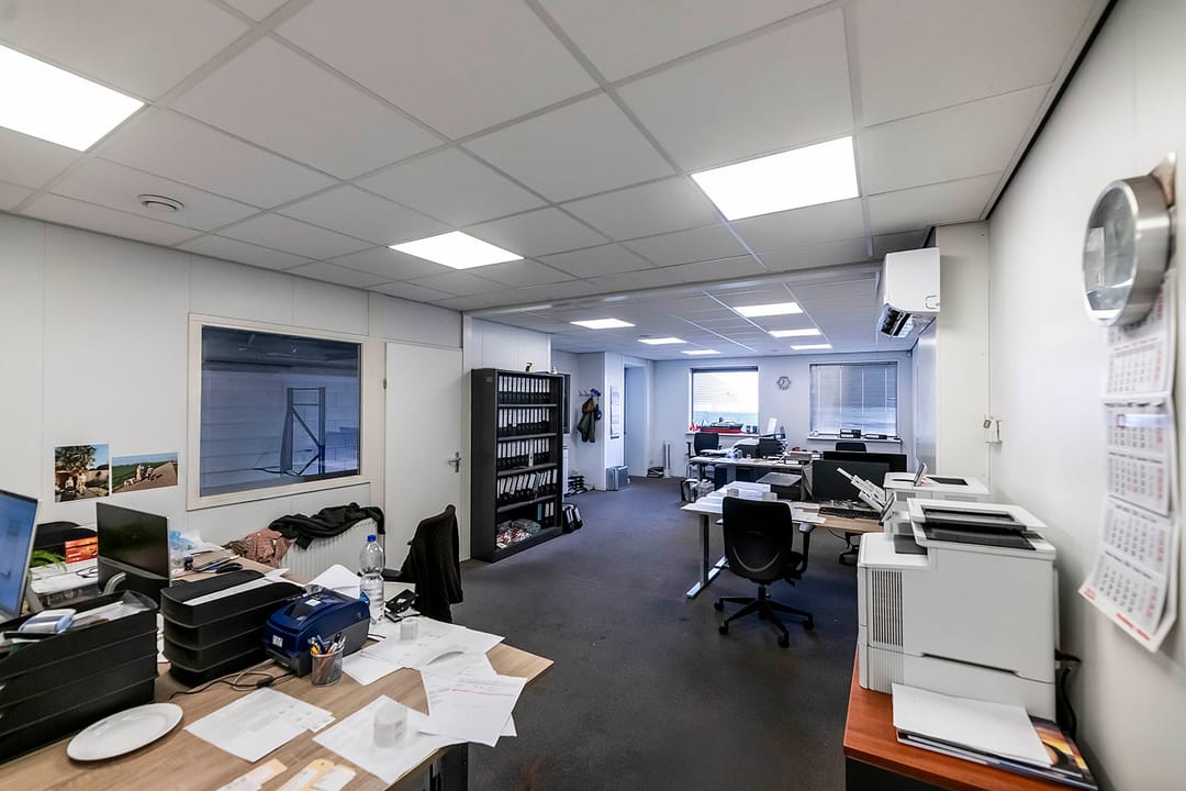 - Overheaddeuren, krachtstroom, betonvloer, heater, toilet, pantry, airconditioning, inbouwarmaturen en te openen ramen