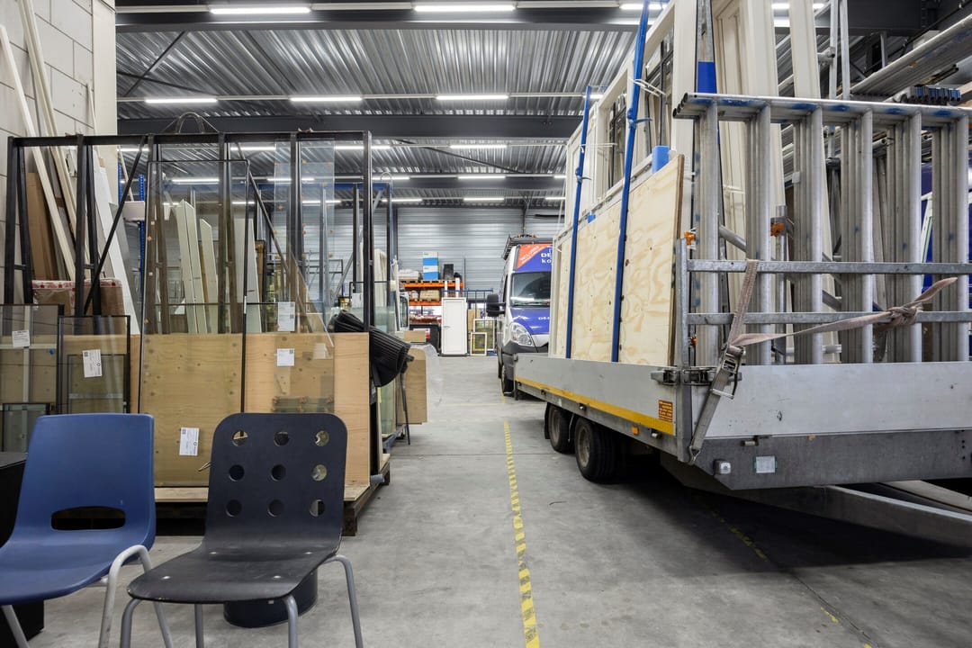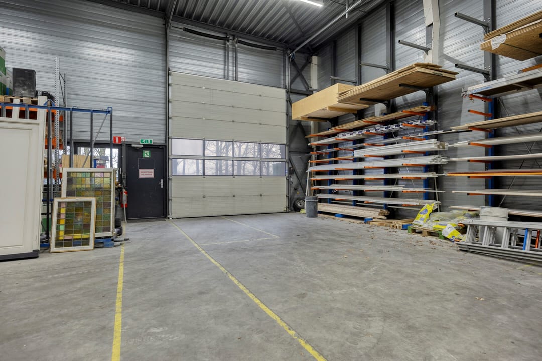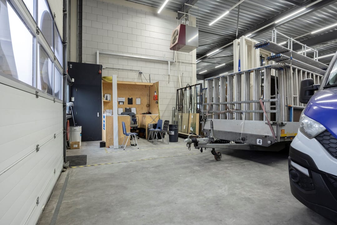 - Overheaddeuren, krachtstroom, betonvloer, heater, toilet, airconditioning en te openen ramen