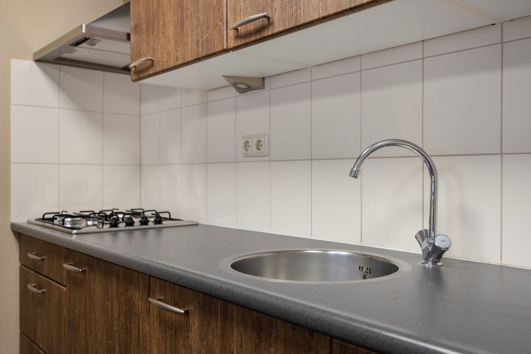 - Keukenopstelling voorzien van spoelbak, vaatwasser, koelkast, gasfornuis en afzuigkap