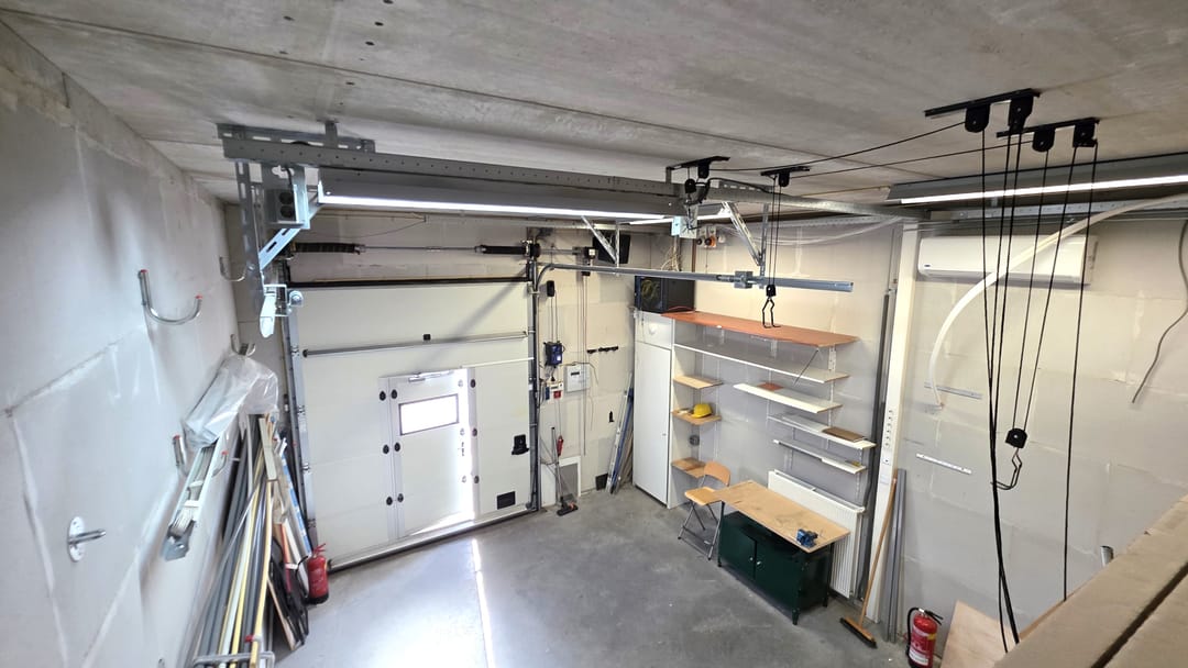 Elektrisch bedienbare overheaddeur: breed ca. 2.478 mm, hoog ca. 3.000 mm.
