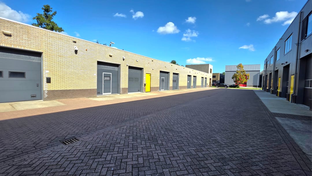 De bedrijfsunit beschikt over een elektrische overheaddeur v.v. separate loopdeur, een opslagruimte op deels verdiepingsvloer (ca. 1500mm x 4.800mm), uitgebreide elektrische installatie, nieuwe airco unit (nog niet aangesloten, ter overname), alarminstallatie, Nefit c.v. combiketel, volledig betegelde toiletruimte voorzien van wandcloset en een fonteintje, bureauopstelling alsmede de parkeergelegenheid voor de deur.