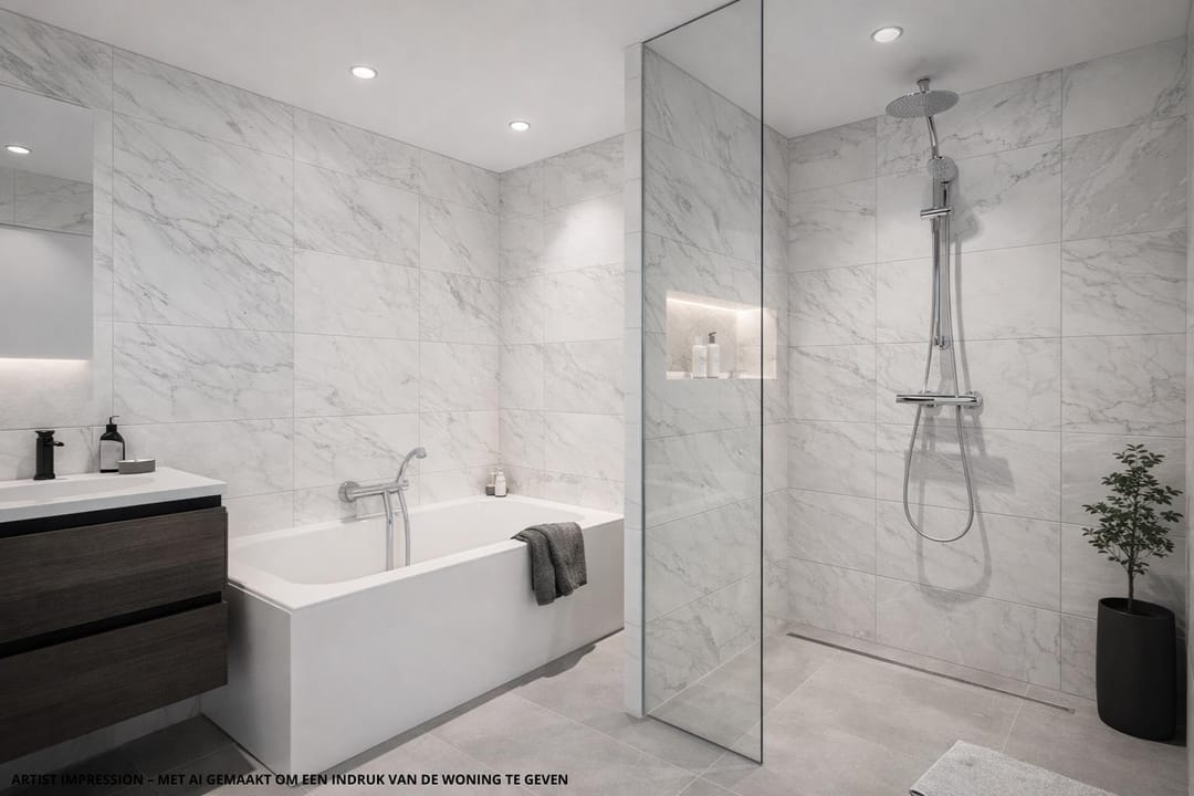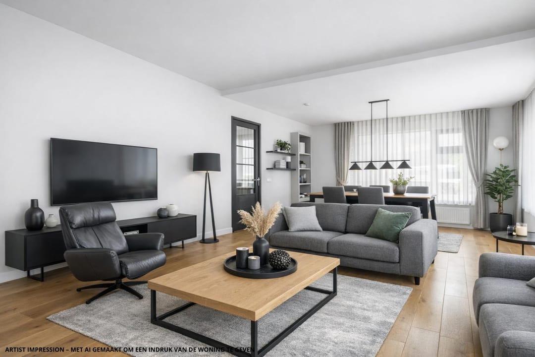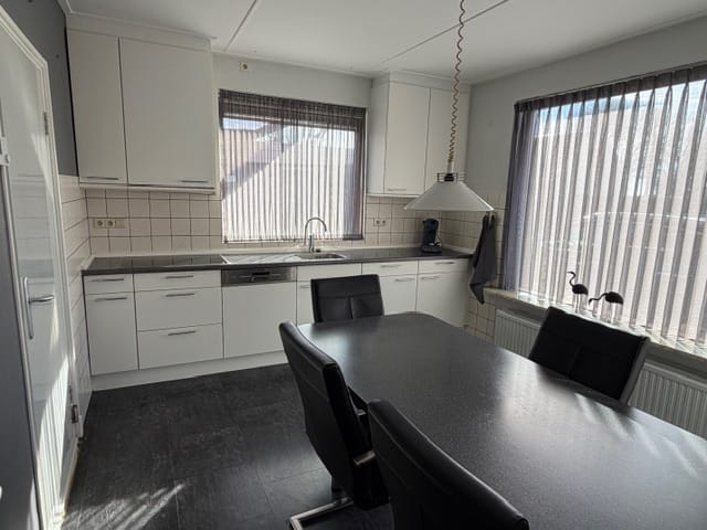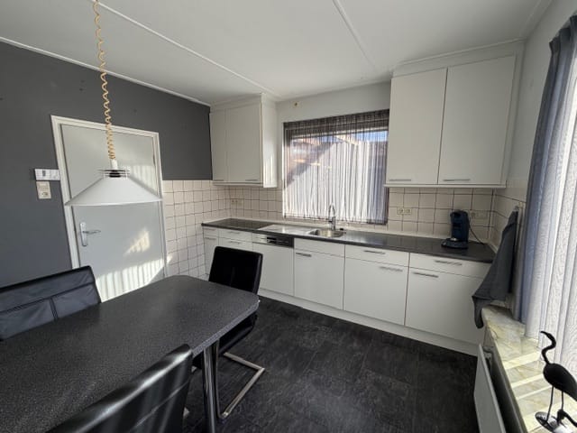 Via de hal met achteringang betreedt u de woning. Hier bevinden zich het toilet, de kelder en de trapopgang naar de verdieping. De dichte woonkeuken (ca. 14 m²) is uitgerust met een nette inbouwkeuken en diverse inbouwapparatuur, waaronder een inductiekookplaat, combimagnetron, koel-vriescombinatie en vaatwasser. De lichte en royale woonkamer (ca. 36 m²) met fraaie houten vloerdelen straalt warmte en comfort uit en biedt volop ruimte voor een gezellige zit- en eethoek. Op de eerste verdieping vindt u vier slaapkamers, alle voorzien van vaste kasten. De verzorgde badkamer is compleet ingericht met een ligbad, douche en wastafel. De praktische vliering, bereikbaar via een vlizotrap, biedt extra bergruimte