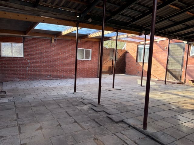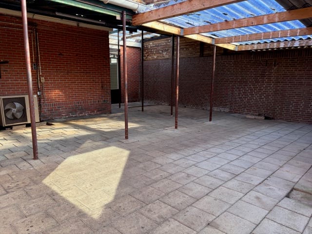 Direct aangrenzend bevindt zich de multifunctionele bedrijfsruimte (totaal ca. 133 m²), bereikbaar zowel via een interne doorgang als een eigen entree. De ruimte is praktisch ingedeeld en bestaat uit een winkel-/werkruimte van ca. 65 m², voorzien van een wateraansluiting en een koelcel. Aan de achterzijde ligt een separate bedrijfsruimte van ca. 34 m² met een tweede koelcel. Via de hal/magazijnruimte met eigen entree bereikt u de royale bergzolder. Hier bevinden zich de c.v.-opstelling en de witgoedaansluitingen. Daarnaast is op deze verdieping een gemoderniseerde extra slaapkamer gerealiseerd, die zich tevens uitstekend leent als werkkamer of logeerkamer. Een royale overkapping van circa 55 m² maakt het geheel compleet en biedt volop mogelijkheden voor opslag of beschut buiten werken of zitten.