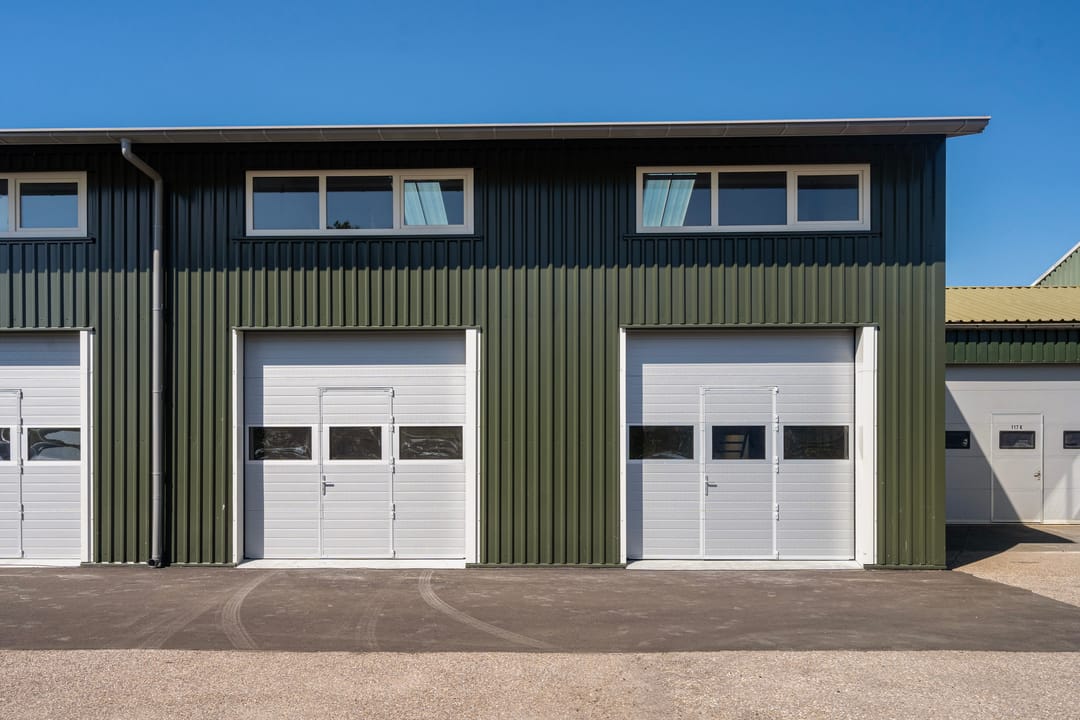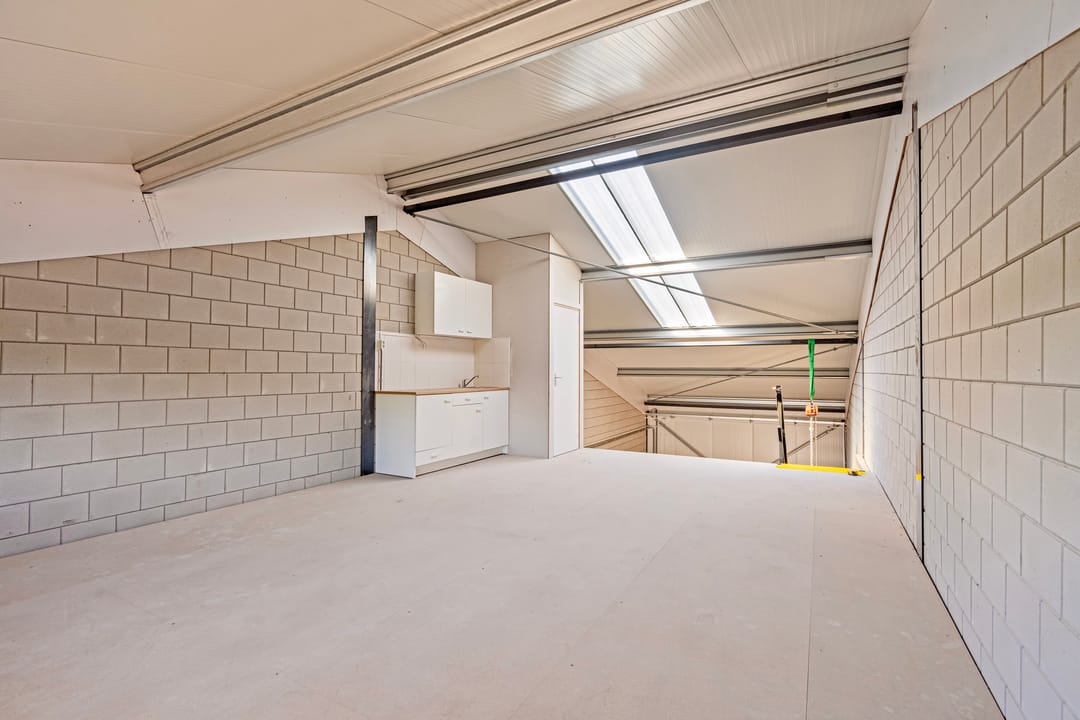- Overheaddeuren, betonvloer, toilet en pantry