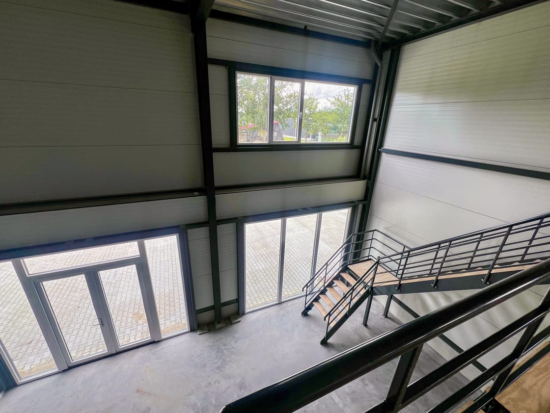 De binnenwanden tussen de bedrijfsunits zijn uitgevoerd in geïsoleerd stalen sandwichpanelen. In de bedrijfsunit is een basis meterkast aangebracht, geheel volgens de geldende eisen van de nutsbedrijven. In de meterkast zijn voor het storten van de betonvloer invoerbochten aangebracht.