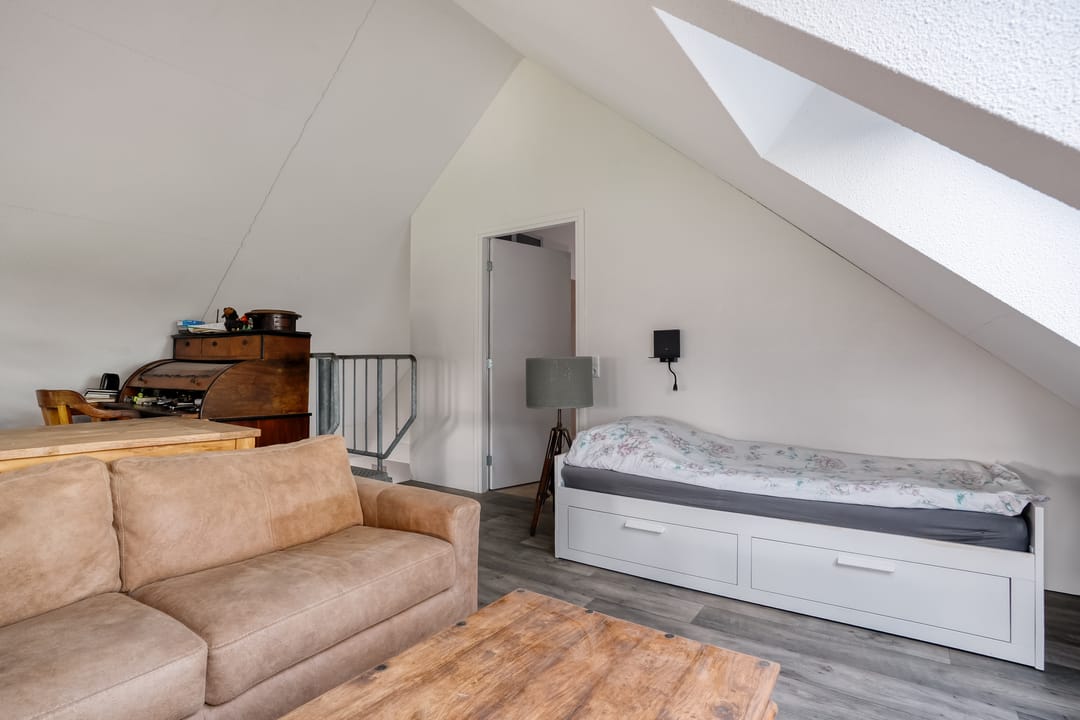 Op de eerste verdieping bevinden zich een slaapkamer met vide en een ruime berging, wat zorgt voor extra opslag en een speelse indeling. Eveneens kunnen hier eenvoudig extra slaapkamers worden gerealiseerd. De woning is daarnaast voorzien van een waterontharder.