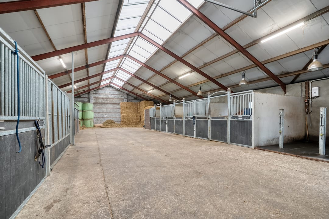 In één van de schuren bevinden zich vijf ruime paardenstallen. Op het dak van de schuren liggen 48 zonnepanelen, wat bijdraagt aan duurzaamheid en lagere energielasten.