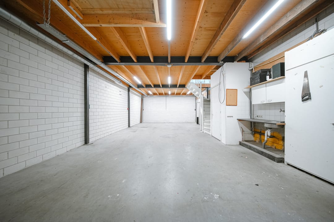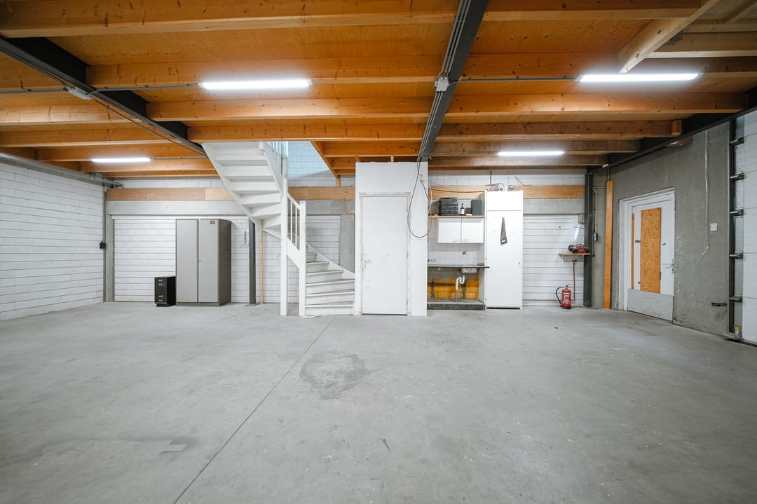 + De begane grond is voorzien van een sterke betonvloer, ideaal voor het gebruik als werkplaats of opslagruimte. De vloer is belastbaar en praktisch in onderhoud, wat het pand geschikt maakt voor uiteenlopende bedrijfsdoeleinden.