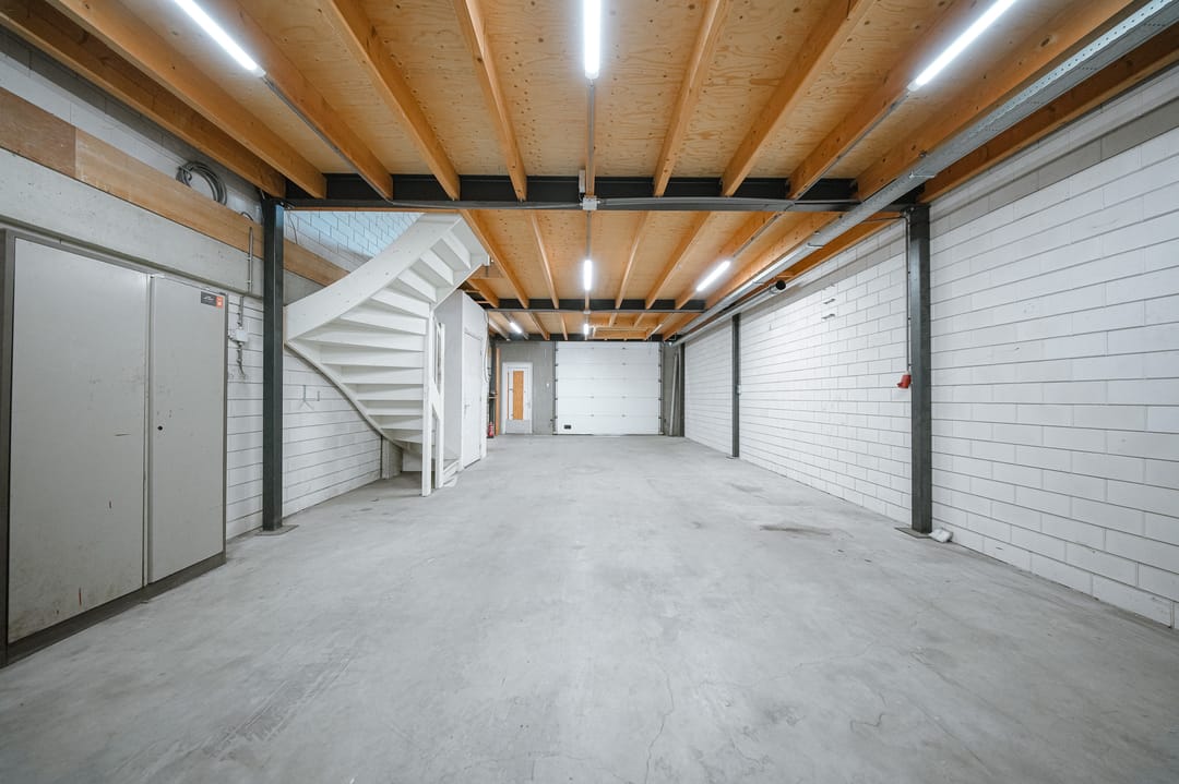 + Aan de voorzijde bevindt zich een overheaddeur voor het in- en uitladen van goederen en een losse toegangsdeur. Deze dubbele toegang draagt bij aan een praktische en professionele uitstraling.