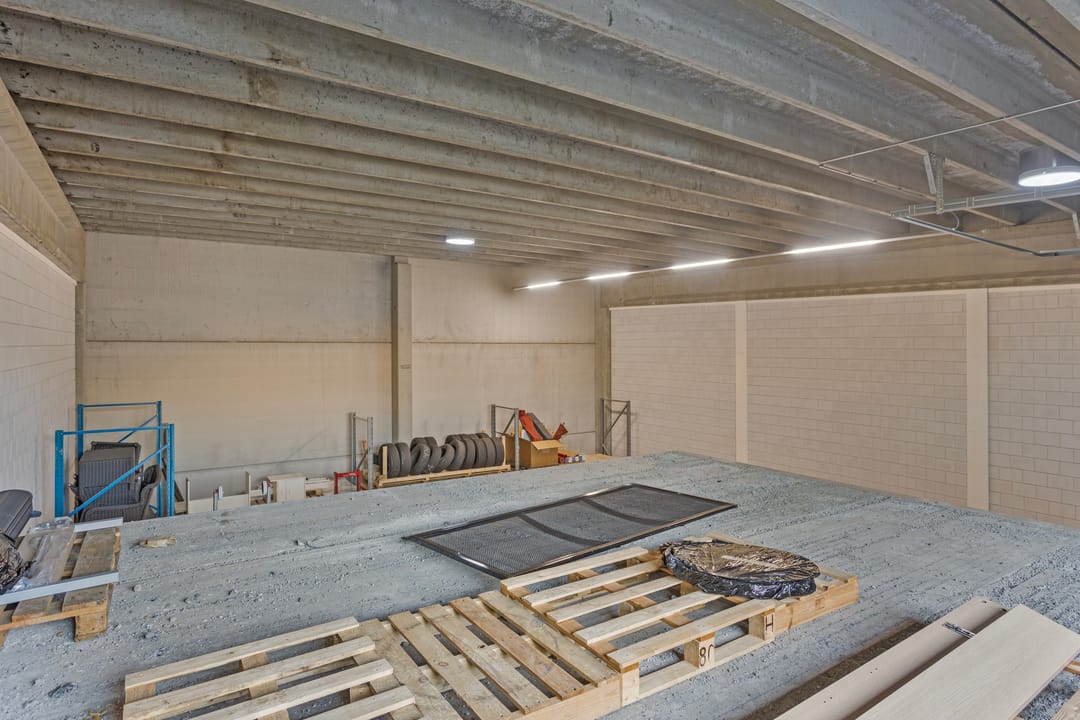 - monolitisch afgewerkte betonvloer voorzien van slijtlaag;