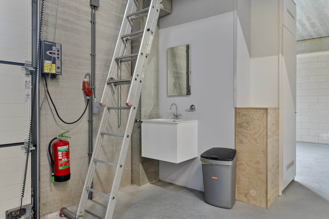 - Lichtstraten, overheaddeuren, krachtstroom, toilet, airconditioning, inbouwarmaturen en te openen ramen