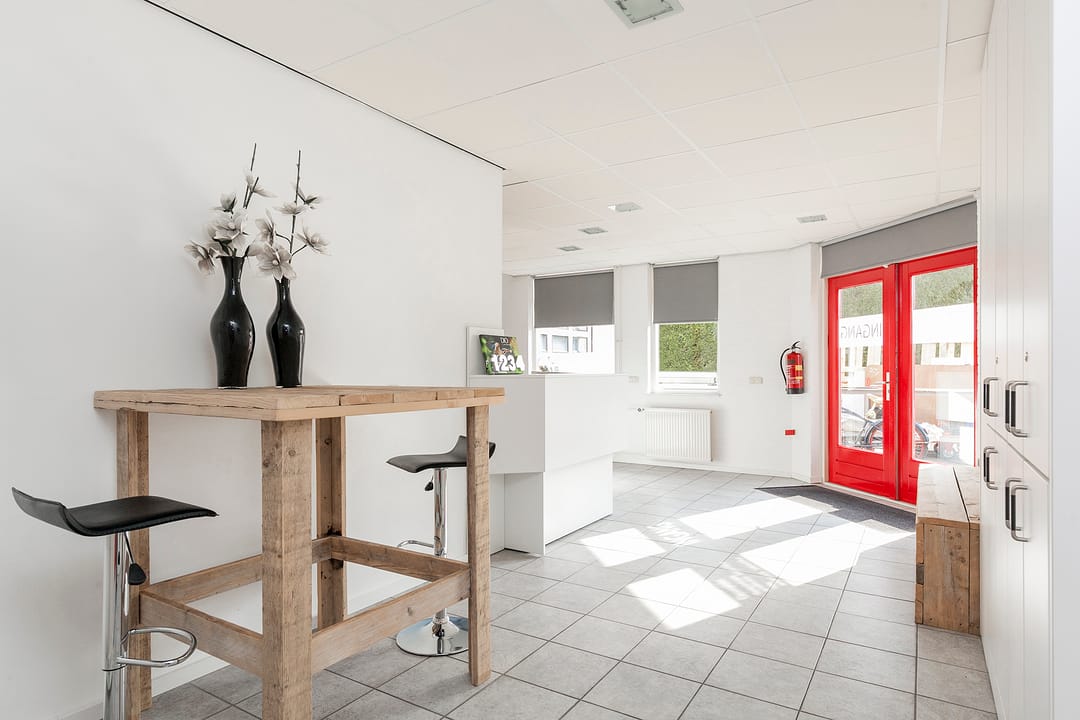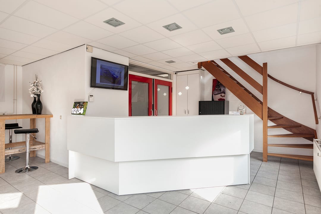 De entree aan de voorzijde (Hunnenpad 1) geeft toegang tot een representatieve ontvangst met balie, ideaal voor het ontvangen van klanten en relaties. Via een vaste trap is de verdieping bereikbaar, waar zich een kantoor-/spreekkamer bevindt die geschikt is voor administratieve werkzaamheden en overleg. Op de begane grond is een multifunctionele studio-, showroom- of kantoorruimte gesitueerd met een open en flexibele indeling, eenvoudig aan te passen aan de wensen van de gebruiker. Tevens is er een separate toiletruimte aanwezig, gescheiden van de werk- en kantoorruimten.