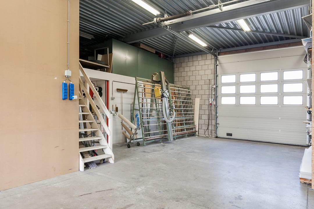 De eerste bedrijfshal heeft een oppervlakte van circa 150 m² en is toegankelijk via een roldeur met een hoogte van circa 3,00 meter en een breedte van 2,80 meter. De vrije hoogte van de hal bedraagt circa 3,00 meter tot aan het laagste punt van de staalbalk, waardoor deze ruimte geschikt is voor opslag, werkplaats of lichte productie.