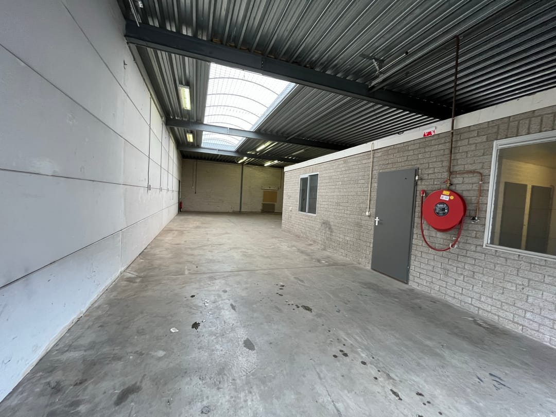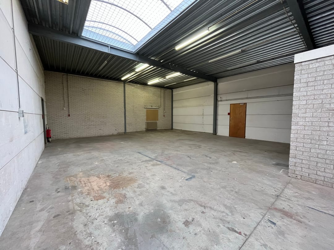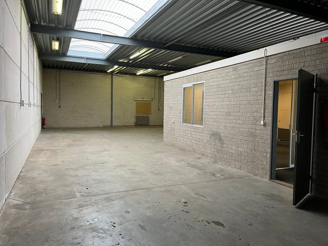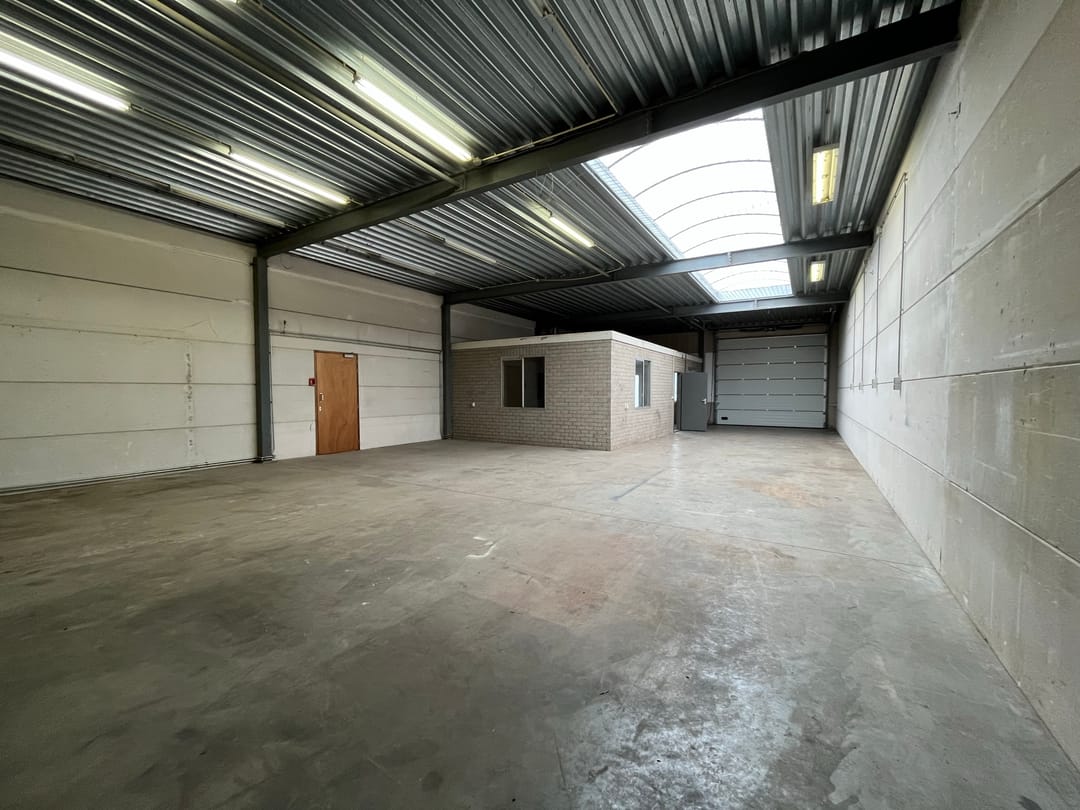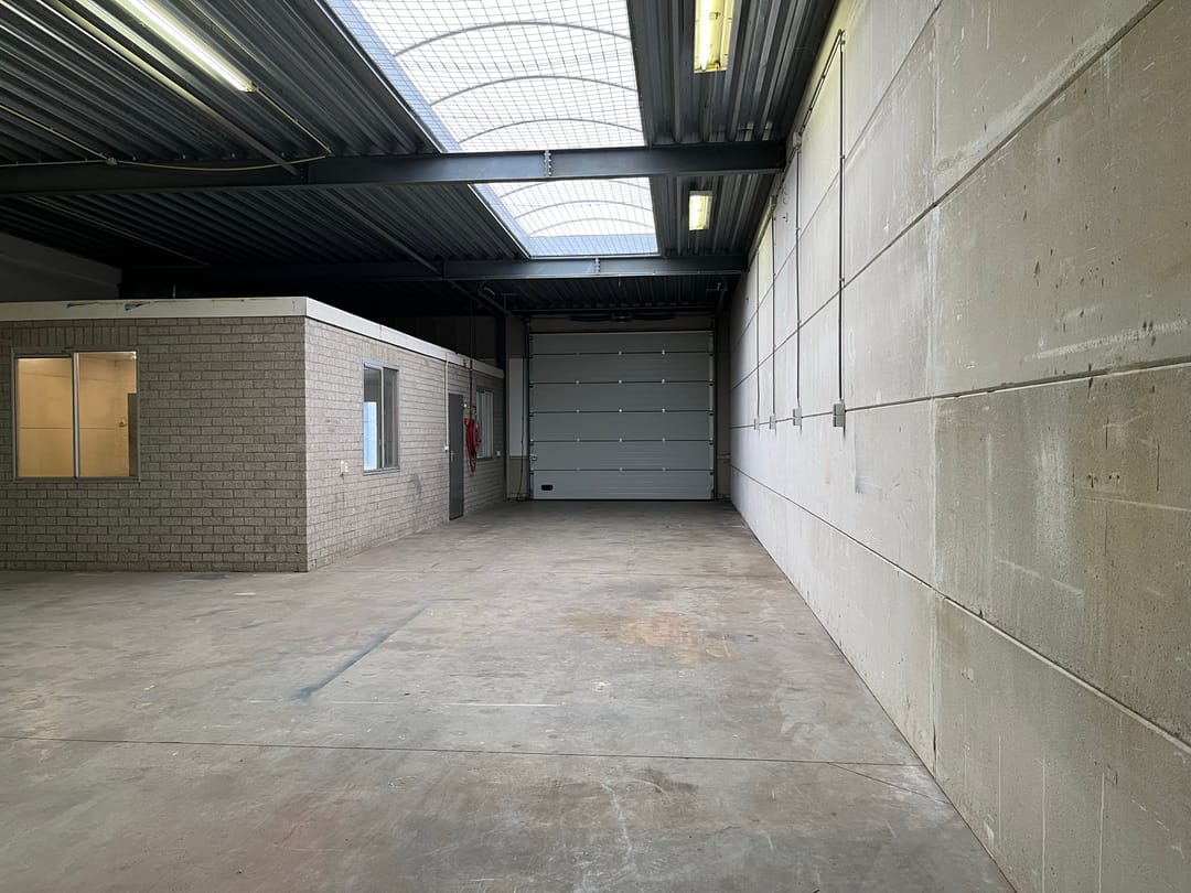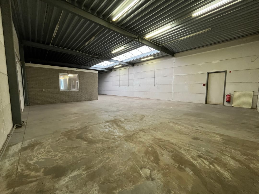 - Lichtstraten, overheaddeuren, betonvloer, toilet en pantry