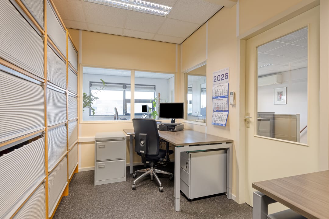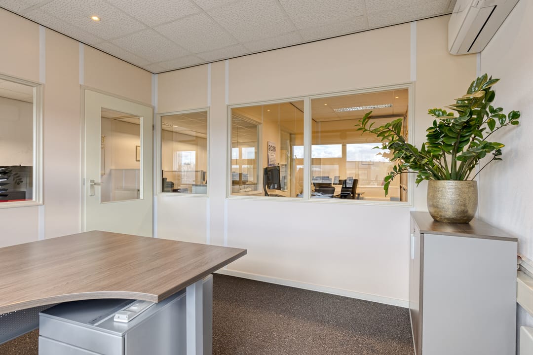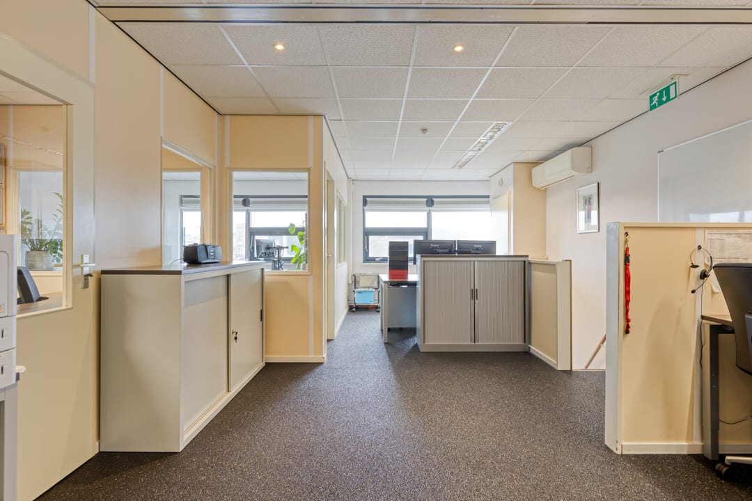 De verdieping is bereikbaar via een vaste trap en ingericht als kantoorruimte. Hier is tevens airconditioning aanwezig, wat zorgt voor een comfortabele werkomgeving. De ruimte is flexibel in te delen en geschikt voor diverse kantoorconcepten.