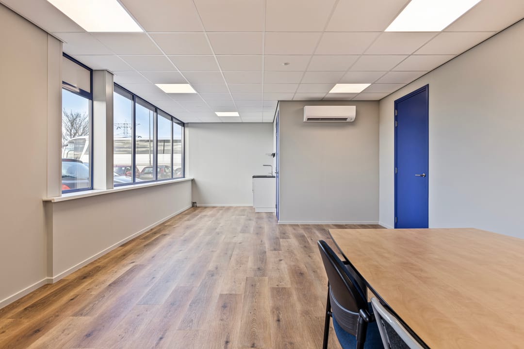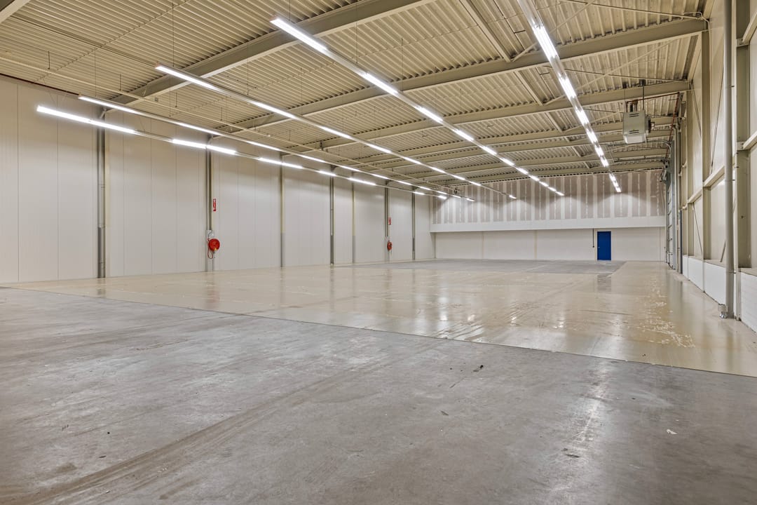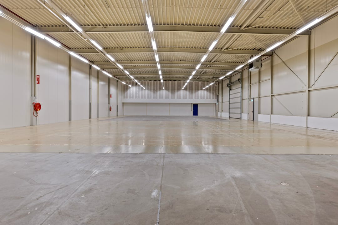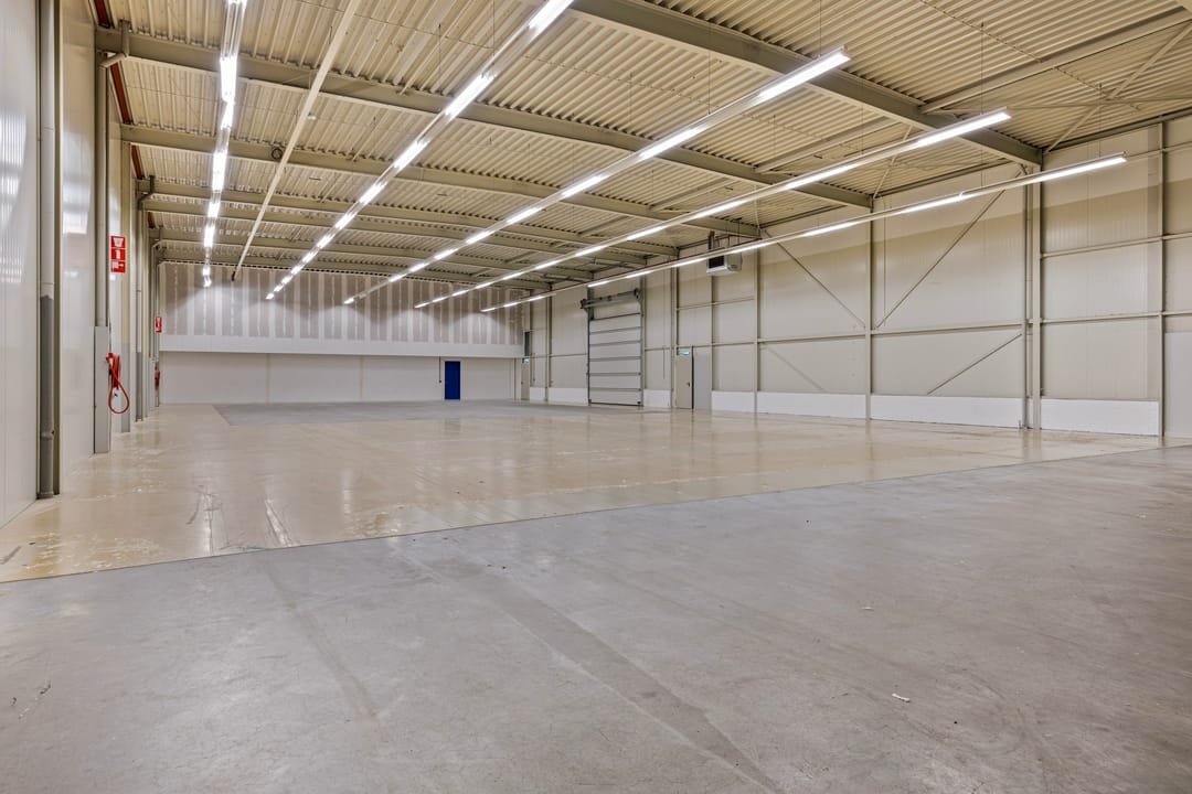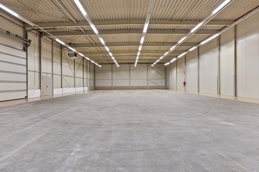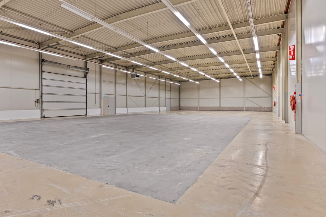 - Overheaddeuren, krachtstroom, betonvloer, heater, airconditioning en inbouwarmaturen