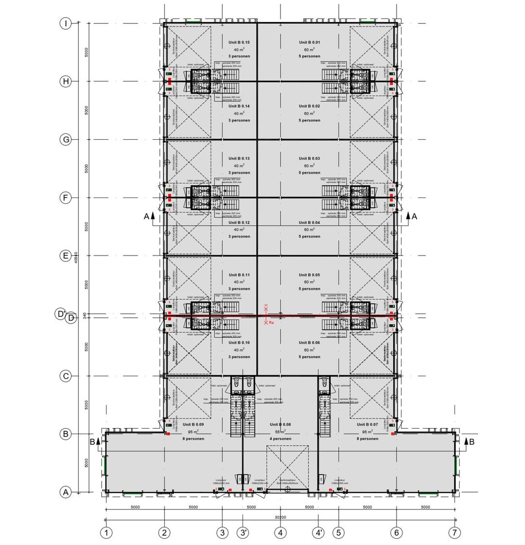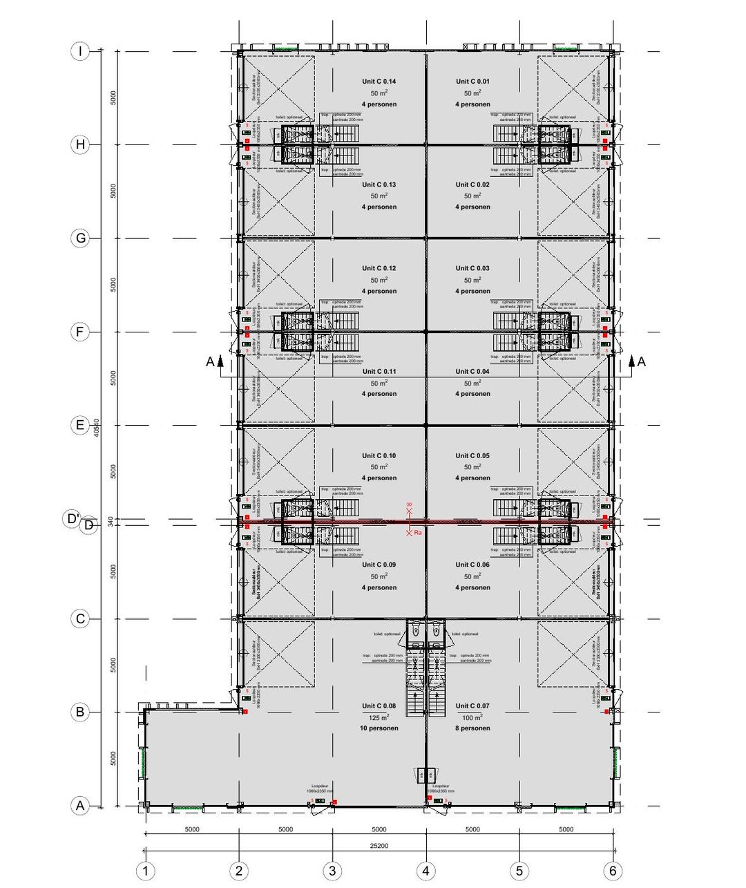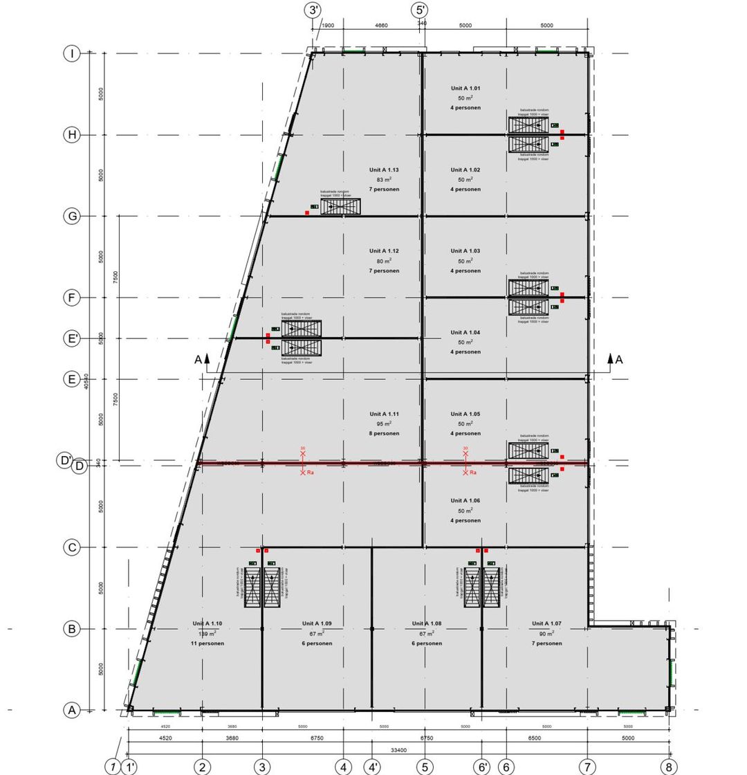 - Betonnen verdiepingsvloeren met een maximale vloerbelasting van ca. 350 kg/m²;