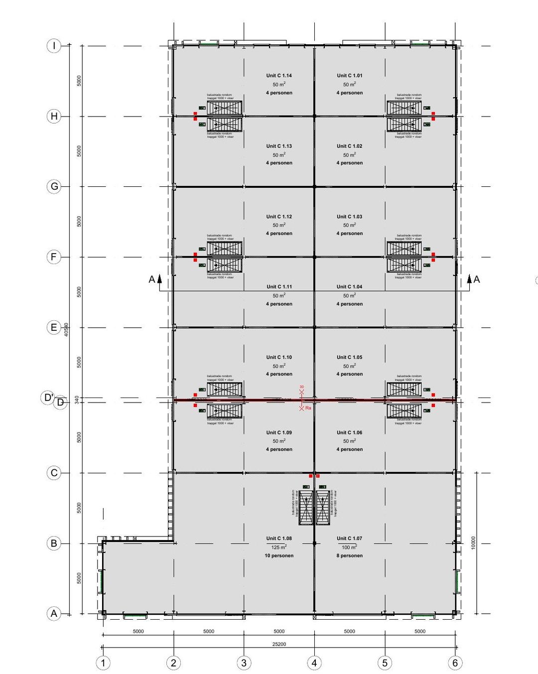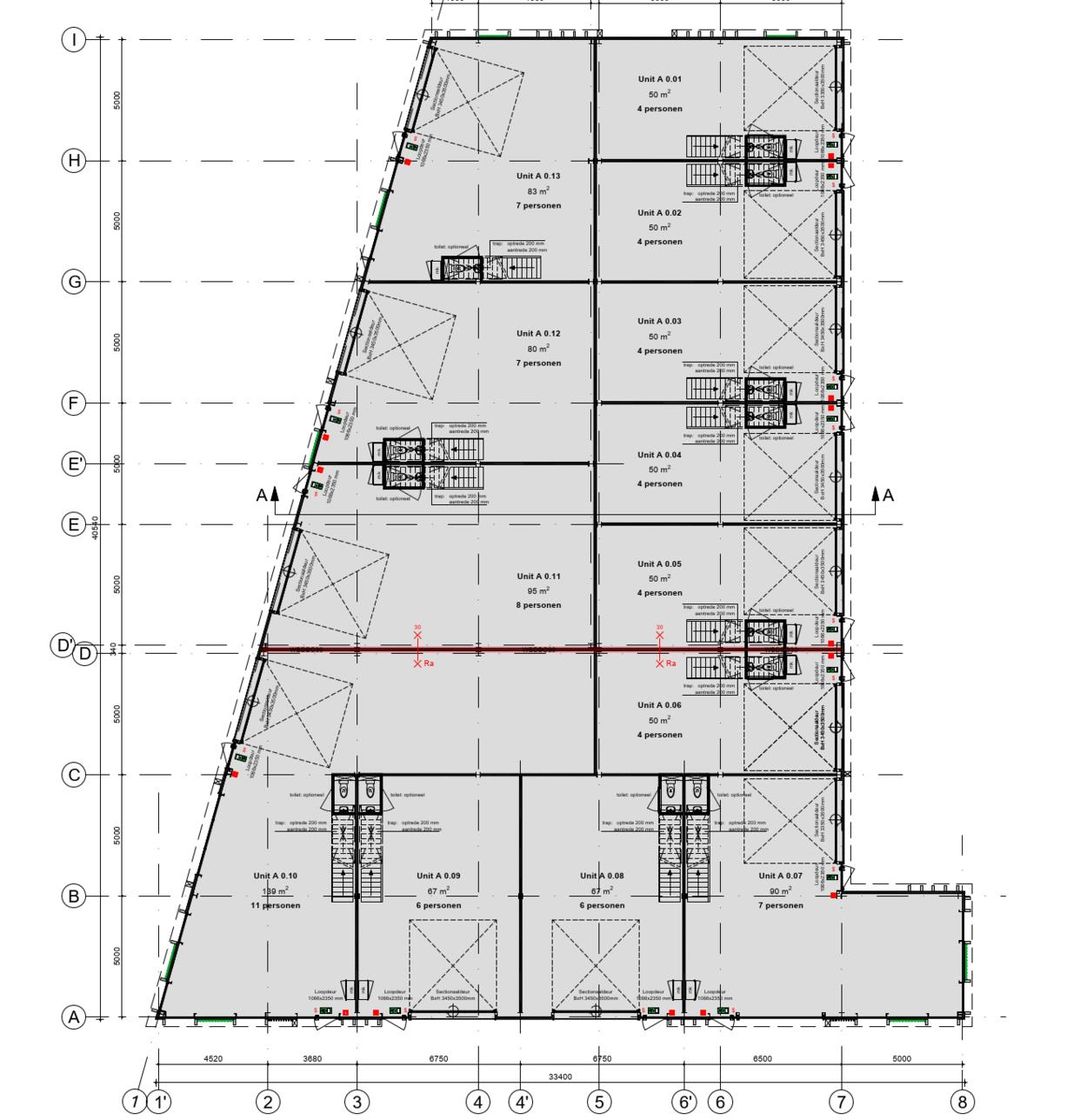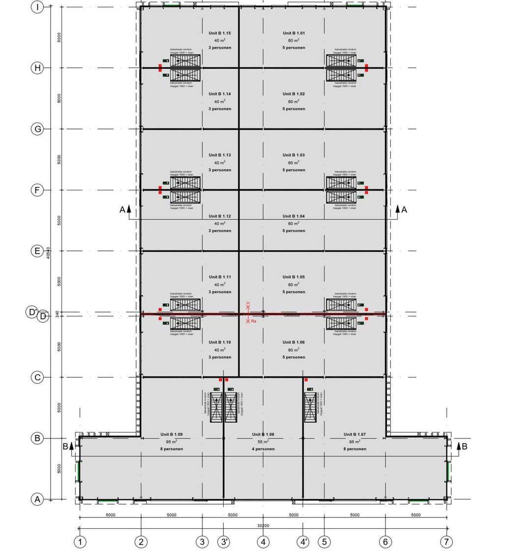 - Betonnen verdiepingsvloeren met een maximale vloerbelasting van ca. 350 kg/m²;