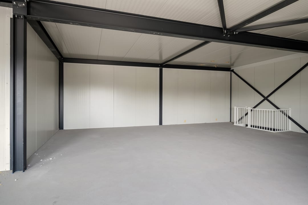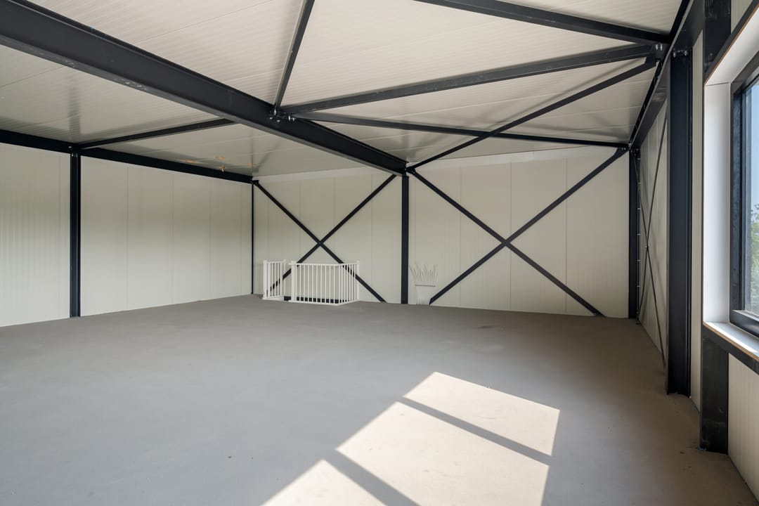 - Geïsoleerd staaldak (Rc-6) voorzien van PVC dakbedekking;