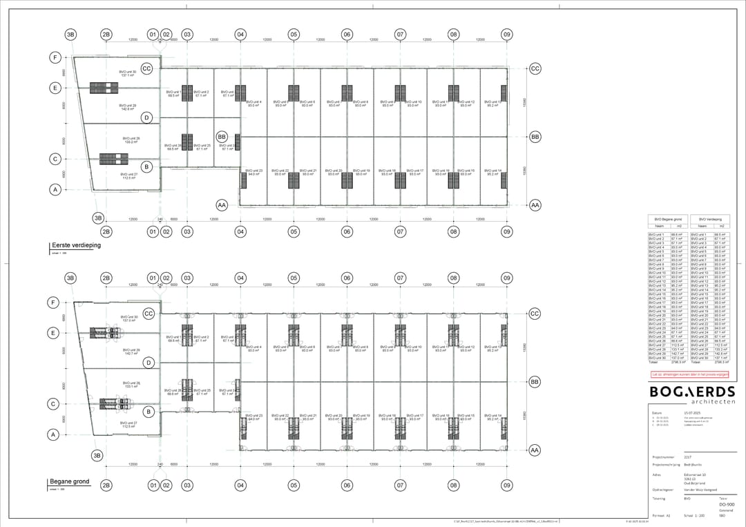 - 26 bedrijfsunits: vrije hoogte op de begane grond ca. 3,70 meter, vrije hoogte op de verdieping ca. 3,60 meter;