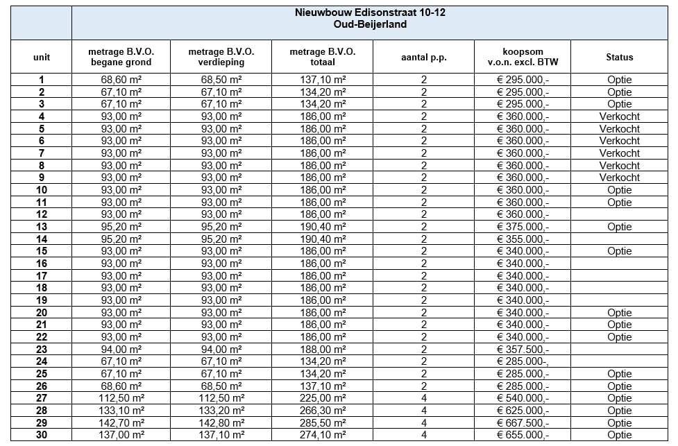 - indien mogelijk worden de units aangesloten op glasvezel; de aansluitkosten zijn voor rekening van de koper.