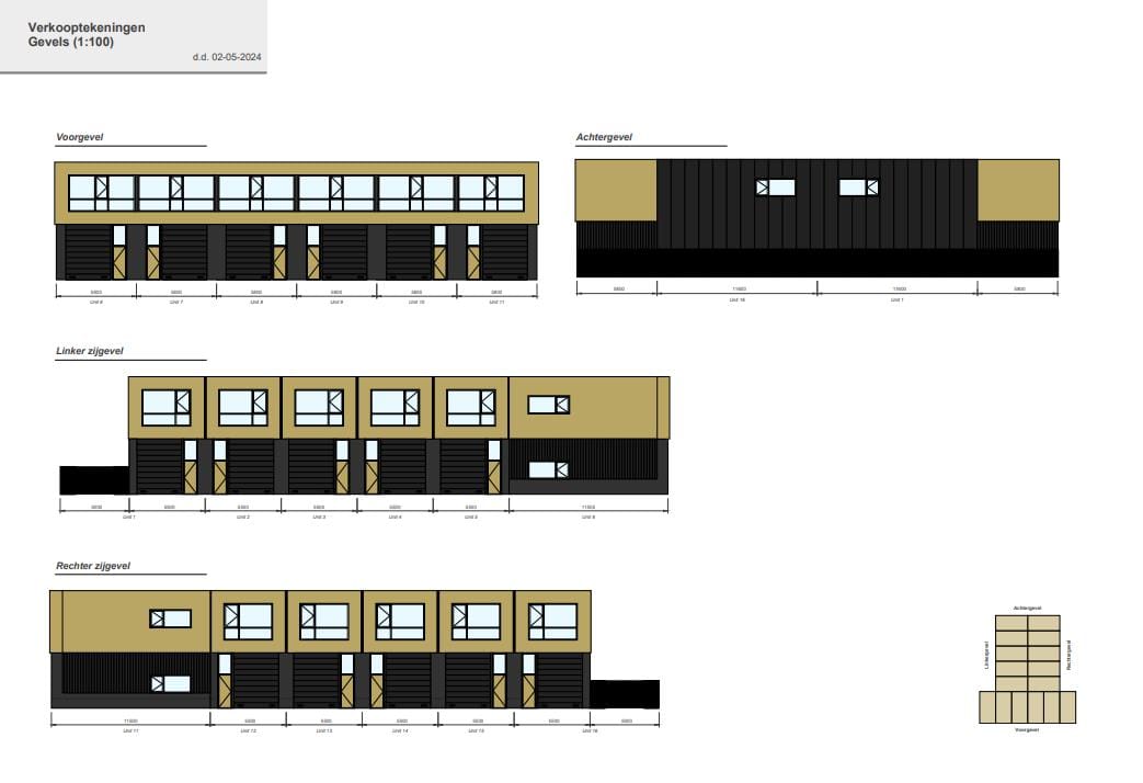 - gevels begane grond metselwerk met daarboven sandwichpanelen, geïsoleerde gevelbeplating en deels hout