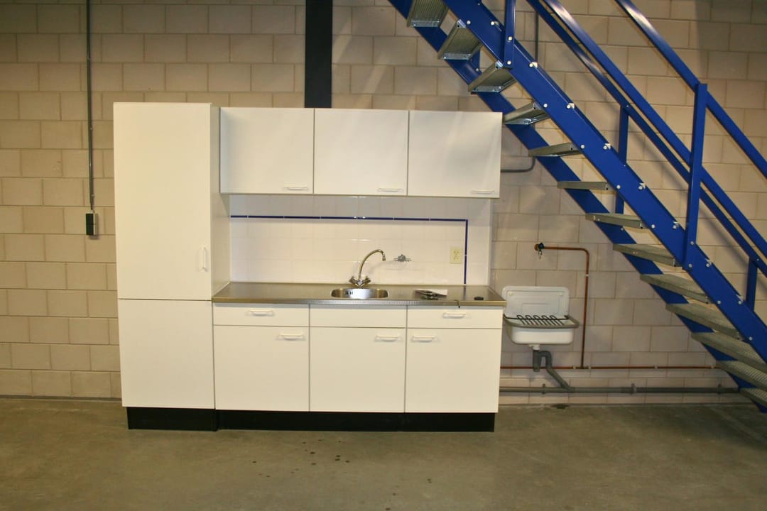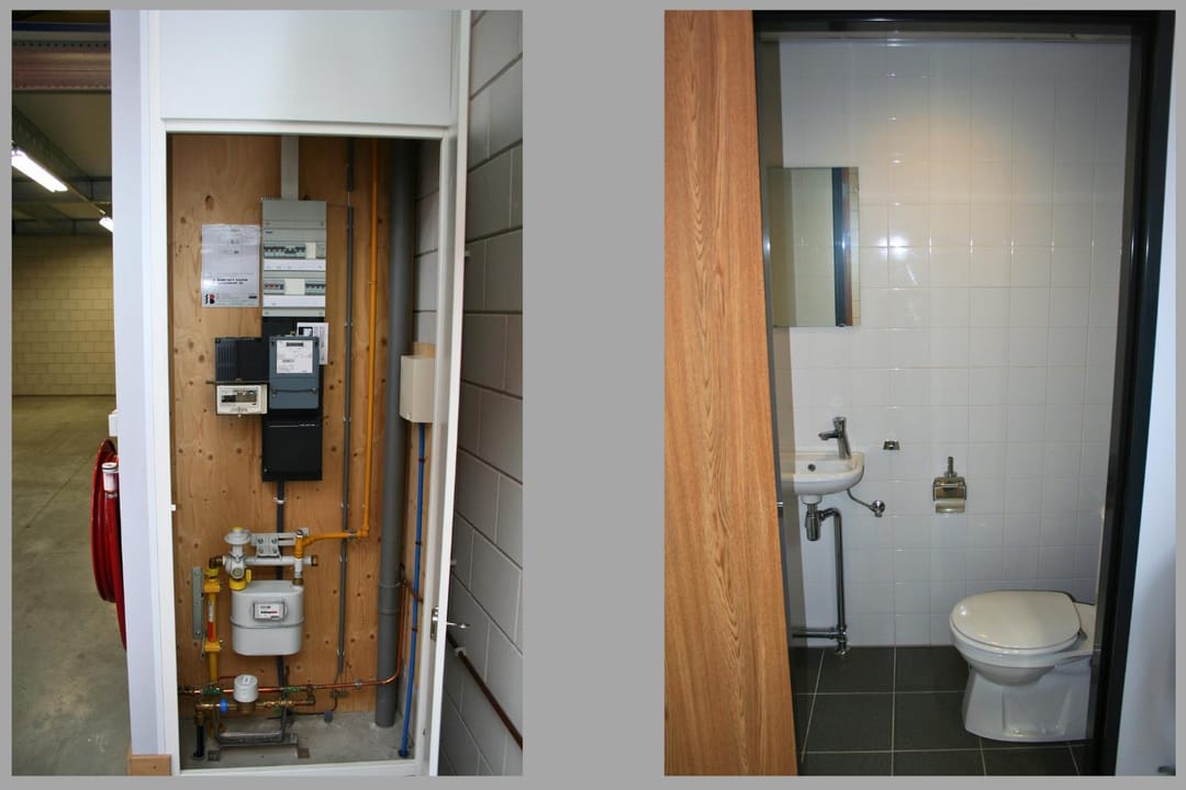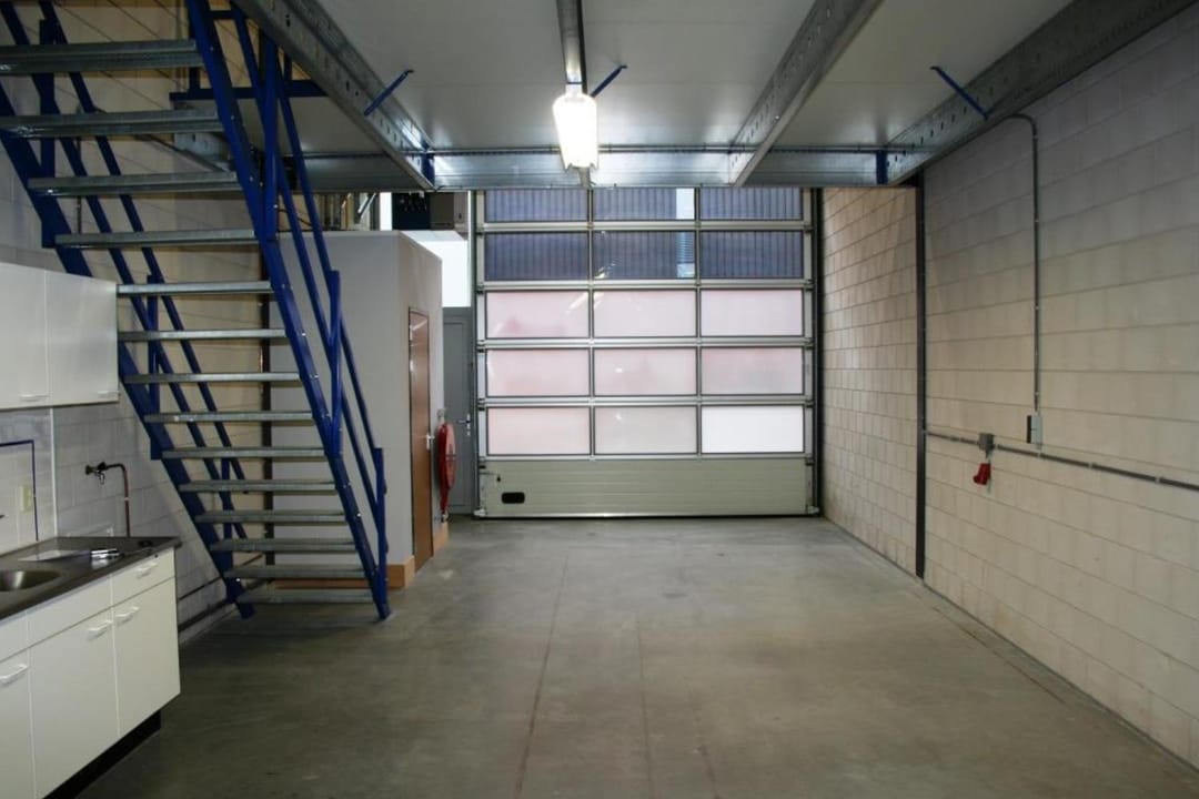 - Overheaddeuren, betonvloer, heater, toilet en pantry