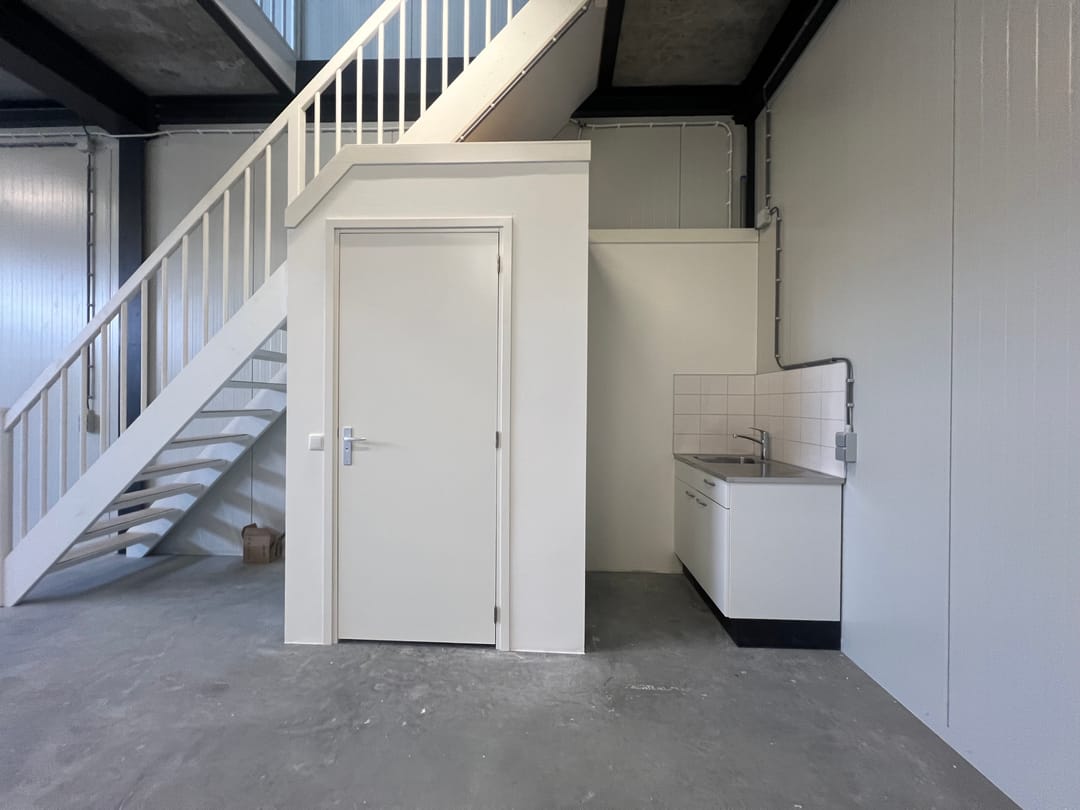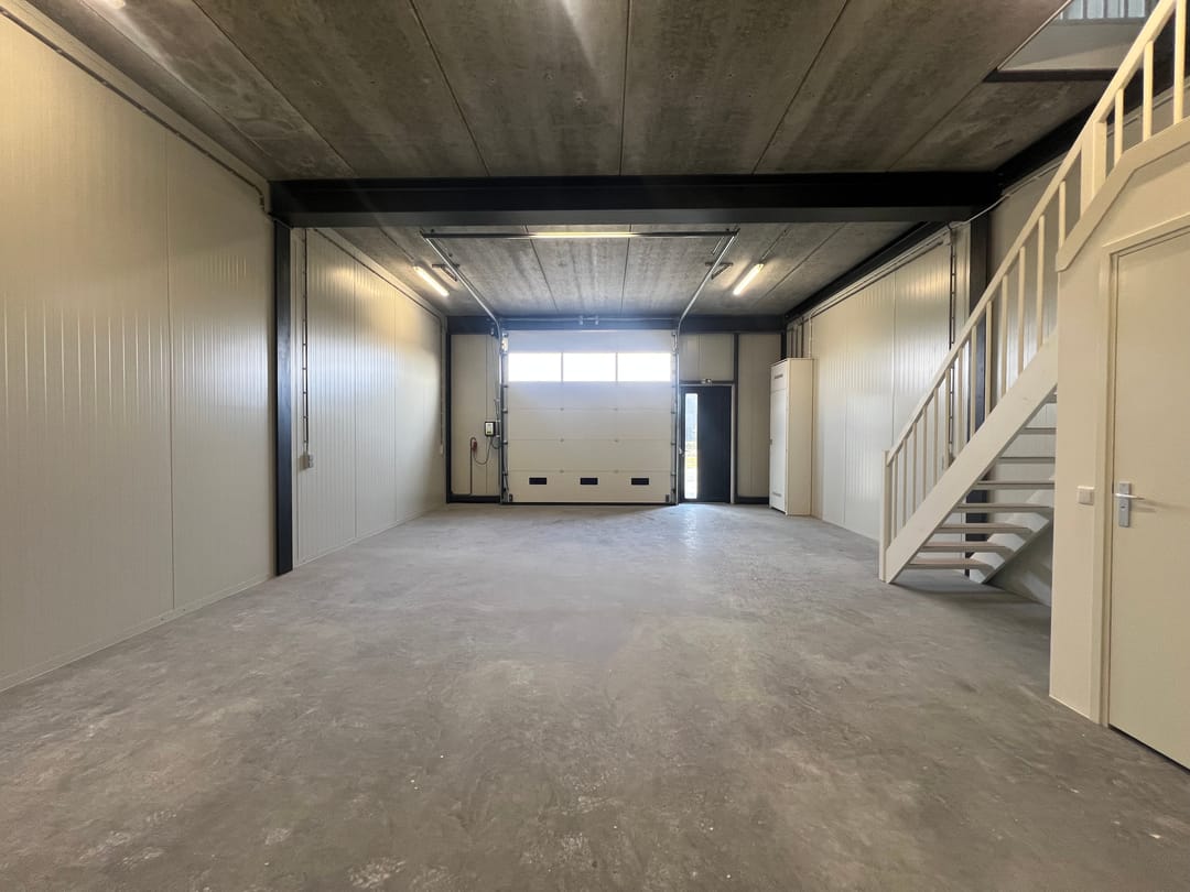 De bedrijfsruimte op de begane grond is o.a. voorzien van een monoliet afgewerkte betonvloer (maximale vloerbelasting 1.000 kg/m²), voorbereiding voor vloerverwarming, een elektrisch bedienbare overheaddeur, separate entree/loopdeur, krachtstroomaansluiting, een vrije hoogte van ca. 3,40 meter, pantry en toiletruimte en is uitermate geschikt voor gebruik als bedrijfs-/opslagruimte. De verdieping is bereikbaar via de houten trapopgang en beschikt over o.a. een volledige betonnen vloer (maximale vloerbelasting 350 kg/m²), welke is afgewerkt met een zandcement deklaag, voorbereiding voor vloerverwarming, verlichting, wandcontactdozen en (te openen) raampartijen in de voorgevel en is derhalve indien gewenst (in overleg met eigenaar/verhuurder) geschikt (te maken) voor gebruik als showroom of kantoorruimte.