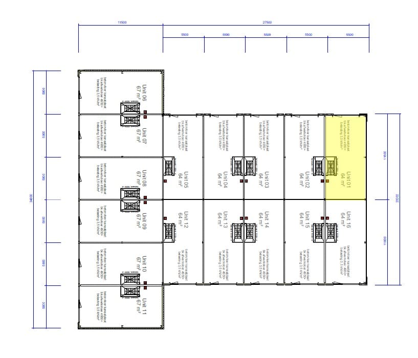 - betonnen verdiepingsvloer met een maximale vloerbelasting van 350 kg/m²;