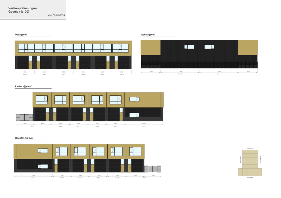 - gevels deels metselwerk en deels geïsoleerde sandwichpanelen;