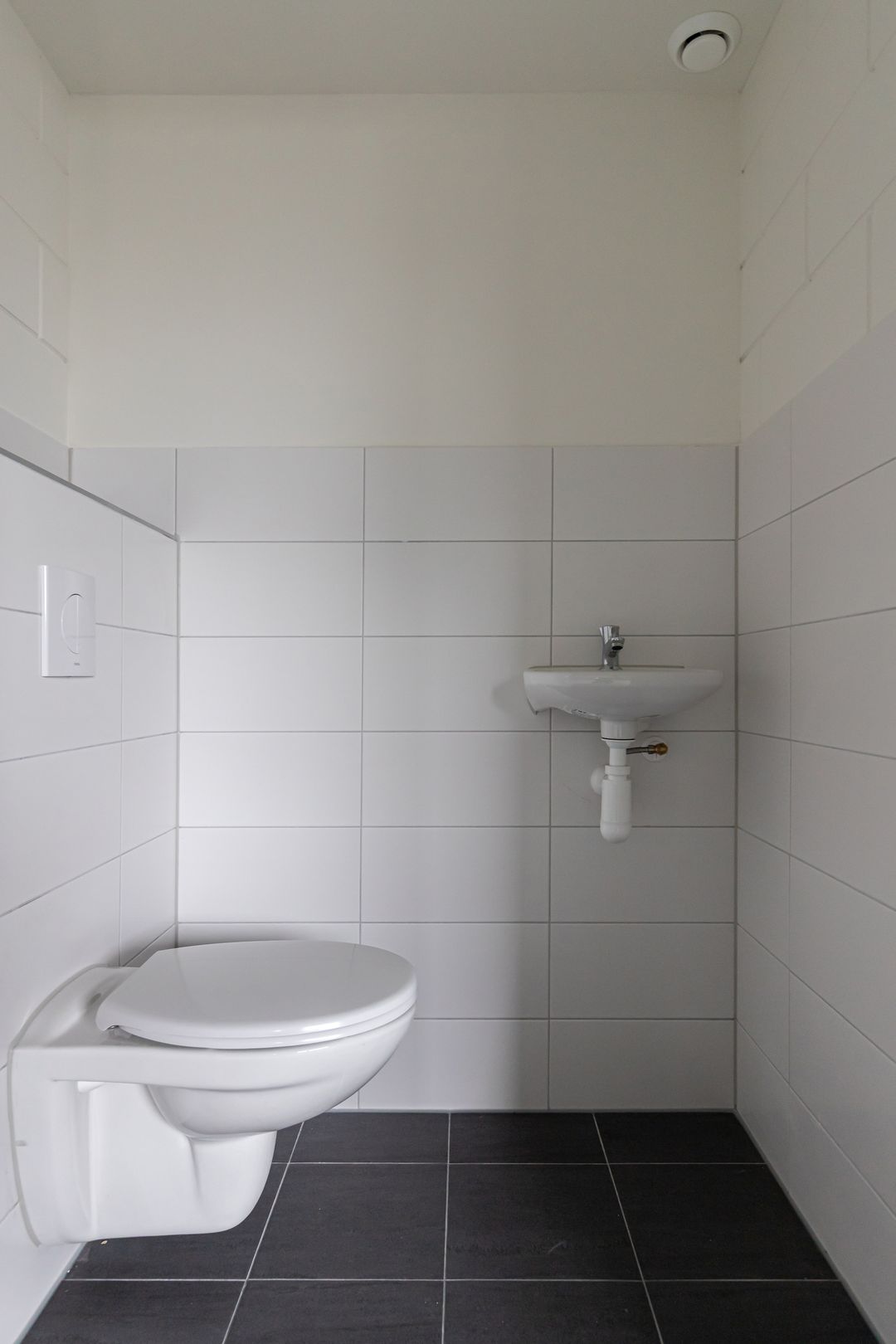 - betegelde toiletruimte met hangend toilet en fonteintje;
