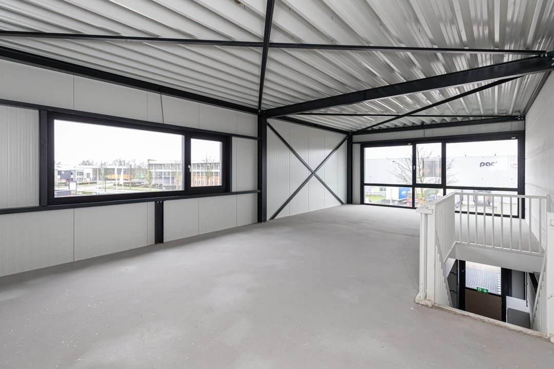 De bovenverdieping is voorzien van grote raampartijen in voorgevel en raampartij in zijgevel, waardoor er veel natuurlijk daglicht binnenvalt — een prettige werkomgeving die zich uitstekend leent als kantoor- of showroomruimte. De verdieping kan naar wens van huurder worden afgebouwd tegen nader overeen te komen voorwaarden.