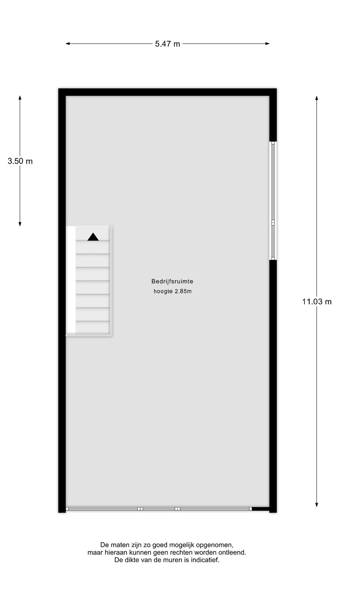 De bedrijfsruimte is voorzien van raampartij in zijgevel, heeft een vrije hoogte van ca. 4,65 meter en leent zich uitstekend voor opslag, productie of lichte bedrijfsactiviteiten.