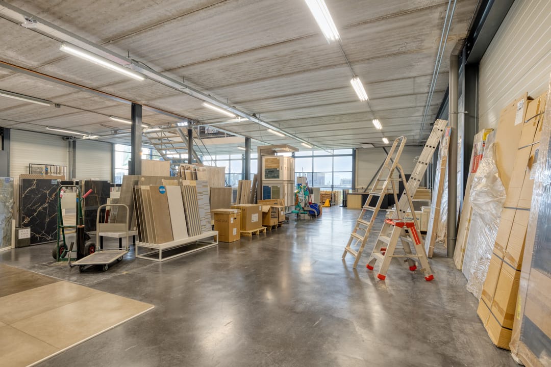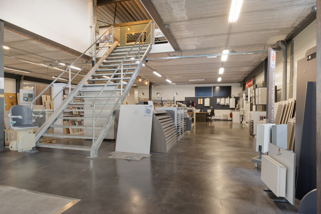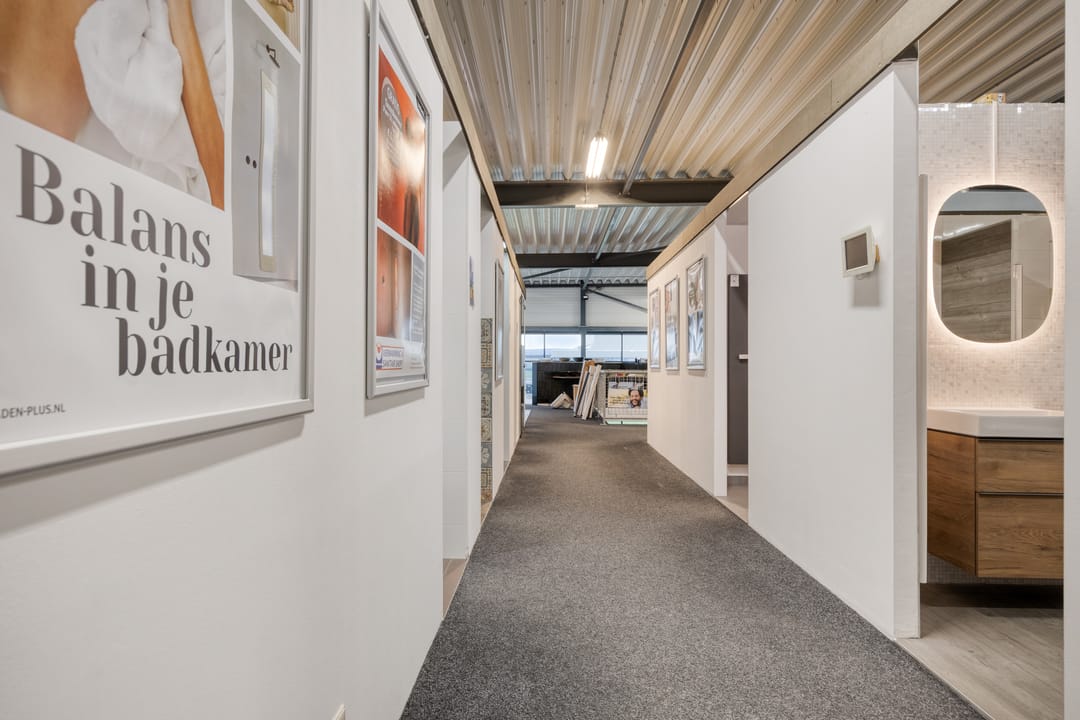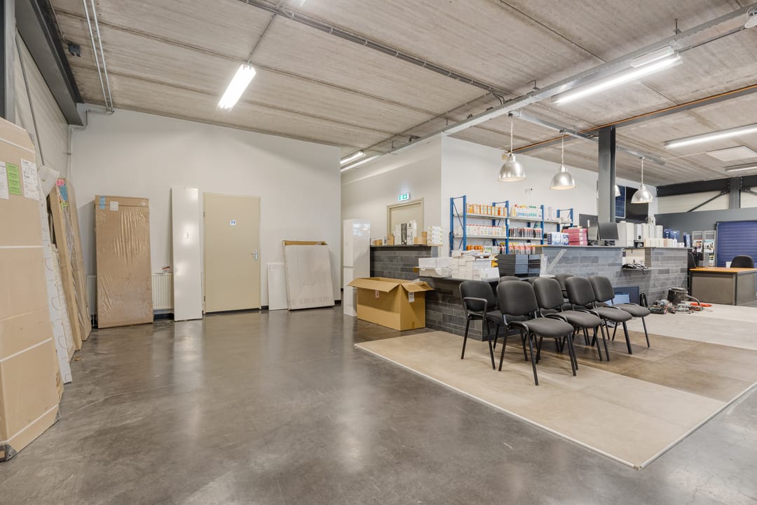 Via de entree is de open showroomruimte bereikbaar. Achterin zijn een kantine, het sanitair en een magazijn beschikbaar. Het magazijn is ook direct via een overheaddeur bereikbaar.