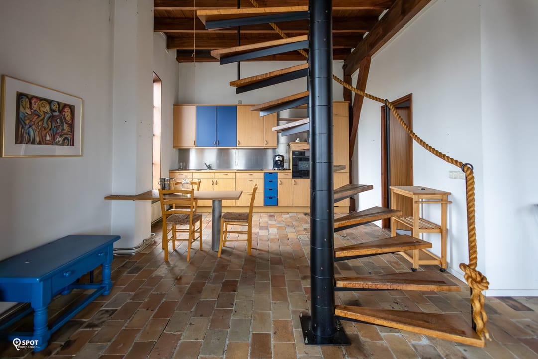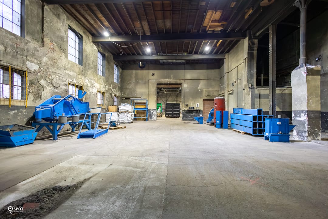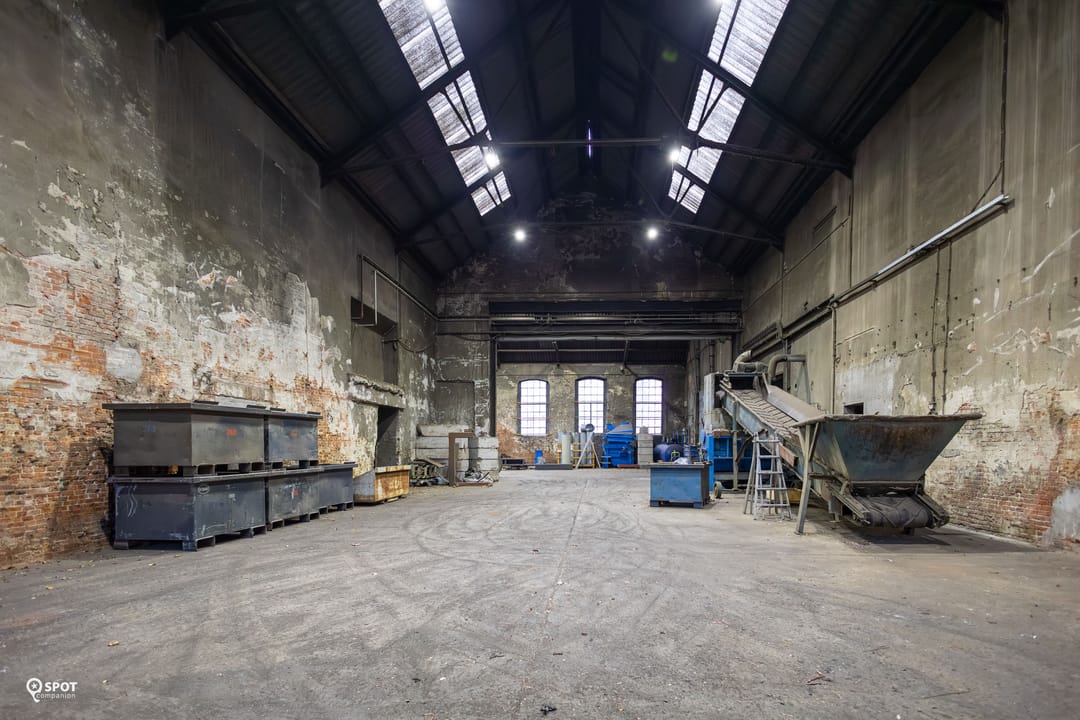 Het langgerekte, witte pand is een fraai voorbeeld van 19e-eeuwse industriële architectuur, waarin historische details zoals gietijzeren spanten en karakteristieke gevels behouden zijn gebleven.