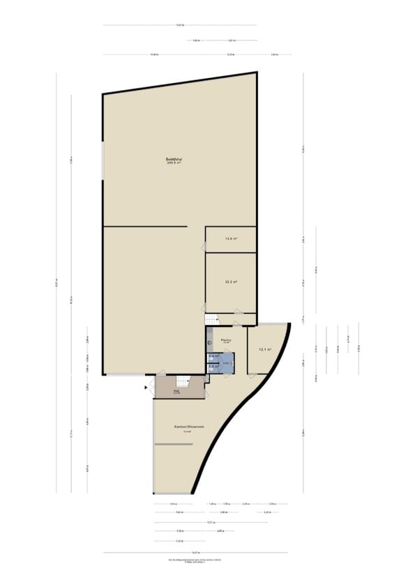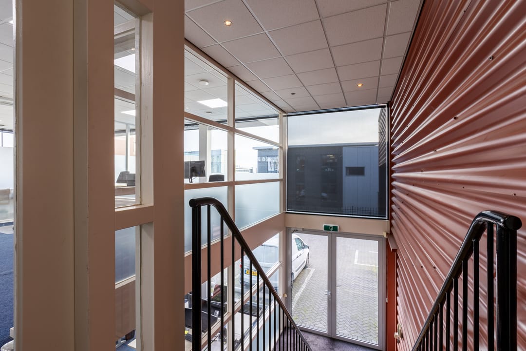 Via de entree bereikt u de bedrijfshal en meerdere multifunctionele ruimtes die gebruikt kunnen worden als showroom, kantoor- of vergaderruimte. Vanuit deze ruimte zijn de toiletten, pantry en een extra kantoor- of vergaderruimte toegankelijk.
