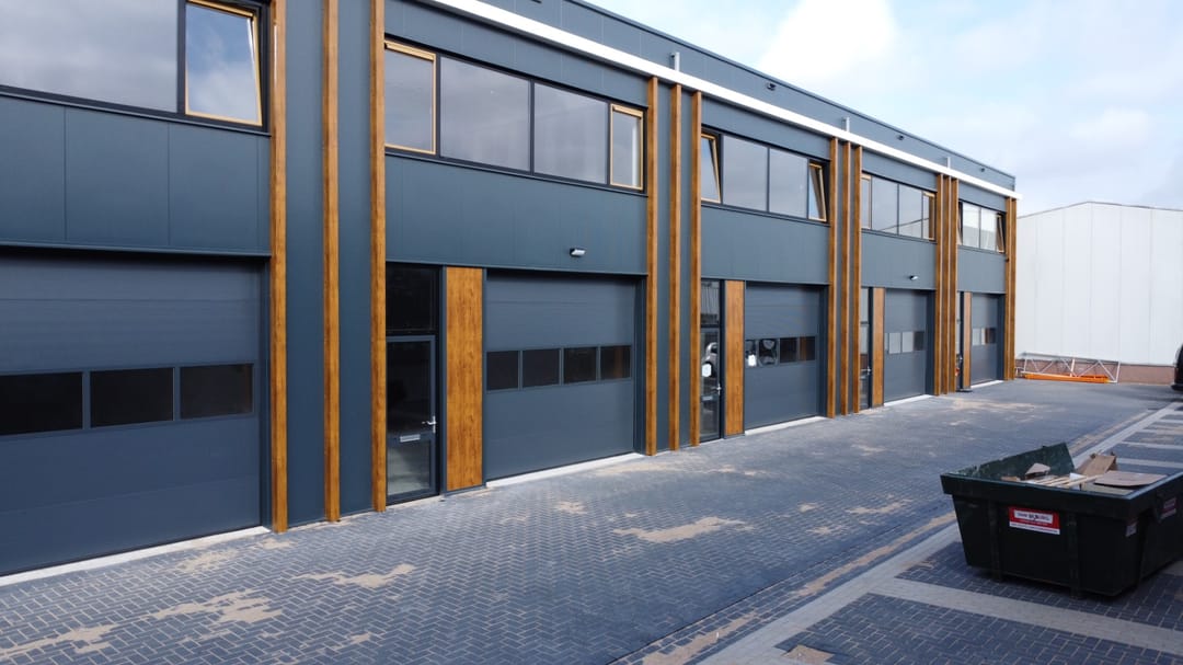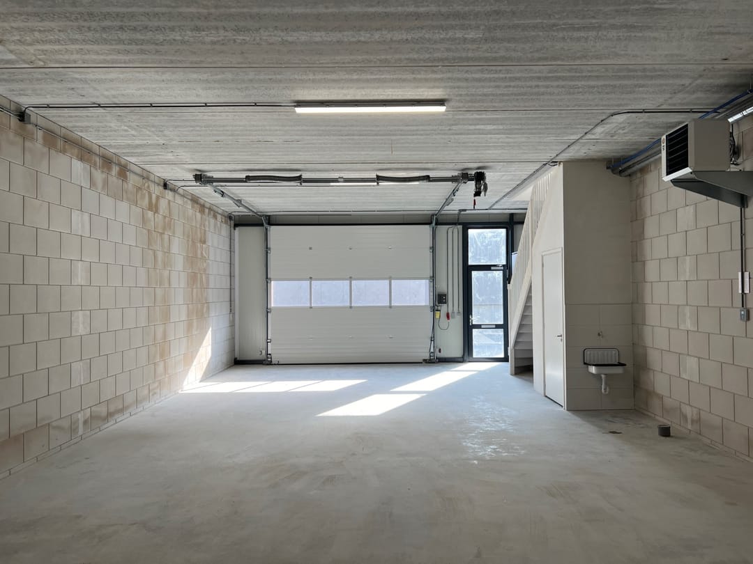 - Overheaddeuren, betonvloer, toilet, pantry, airconditioning en mechanische ventilatie