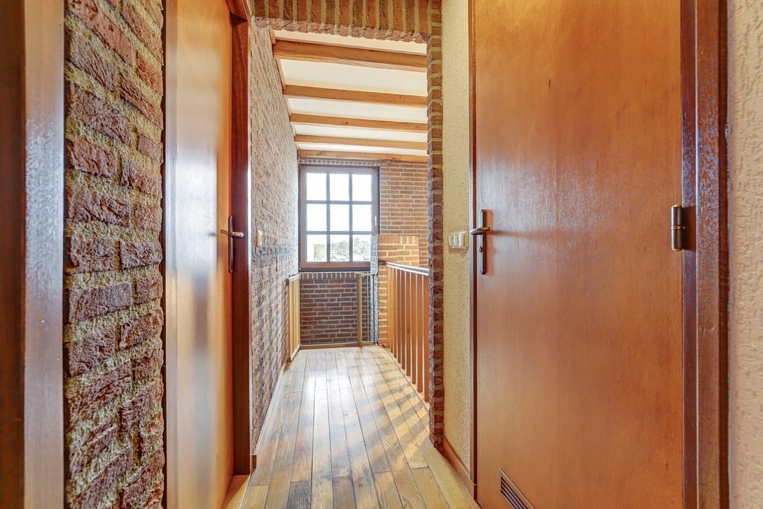 Via de trap met balustrade bereik je op de overloop. Zowel op de overloop als op de slaapkamers ligt een prachtige houten vloer.