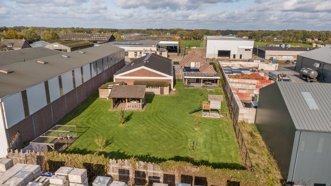 Op het industrieterrein  van  Panningen staat  deze vrijstaande  bedrijfswoning die je het  beste  van twee werelden biedt:  wonen  en werken  op één plek met  volop ruimte om te leven,  ondernemen  en ontspannen.  De fijne uitstraling van de woning valt direct op bij de ramen voorzien van roedes en het grote overdekte terras aan de achterzijde. Binnen heb je op de begane grond heel veel ruimte in de royale woonkamer en sfeervolle leefkeuken, perfect voor lange avonden aan de tafel waar makkelijk 10 personen aan kunnen. De houtkachel zorgt bovendien voor een knusse sfeer. Een extra kamer aan de voorkant van de woning leent zich uitstekend als kantoor of speelruimte en praktische ruimtes zoals een bijkeuken, voorraadkamer en aparte wasruimte maken het dagelijks leven extra comfortabel. Op de bovenverdieping liggen drie slaapkamers en een complete badkamer met ligbad en douche. Via de vlizotrap bereik je de ruime bergzolder. Buiten gaat de beleving verder: een diepe tuin van maar liefst 40 meter met een overdekt terras direct achter de woning, een grote houten hut met veranda en je eigen biertap, een kippenren, twee bergingen en een garage. En alsof dat nog niet genoeg is, staat naast de woning een loods van circa 35 bij 15 meter die zich leent voor talloze mogelijkheden. Op het dak van deze loods liggen 21 zonnepanelen die zorgen voor de stroomvoorziening van de woning.